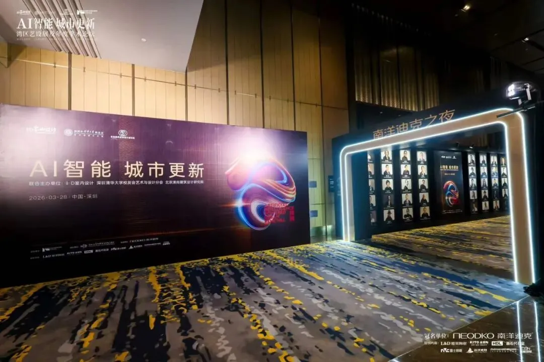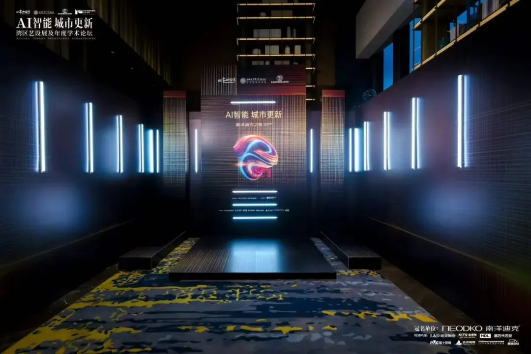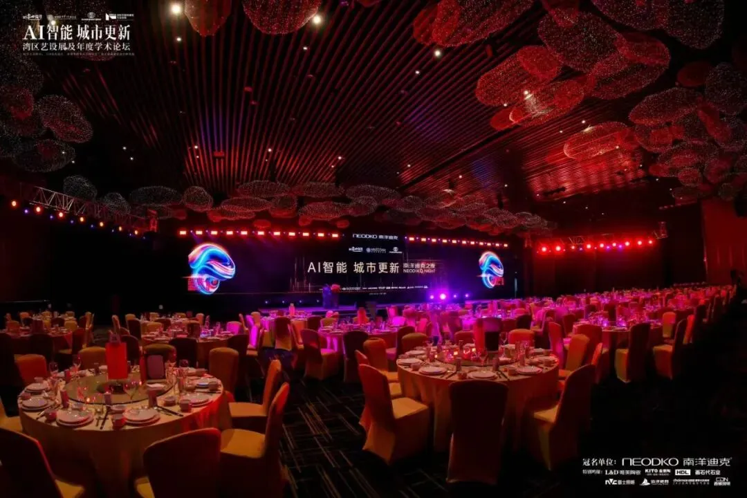 同一时间,另一场高端行业活动也在深圳上演——AI智能城市更新湾区艺设展及年度学术论坛,暨“南洋迪克之夜”。这是一场汇聚行业大咖、学术专家和设计精英的盛会,对舞台效果和技术稳定性提出了更高的要求。- LED屏是这场活动的视觉核心。我们搭建了超宽高清LED主屏,用于展示论坛主题、嘉宾介绍和学术报告内容。考虑到活动现场有大量摄影摄像需求,我们选用了高刷新率屏幕,确保拍摄画面无频闪、色彩真实。左右两侧还配备了辅助屏幕,方便后排观众观看。
