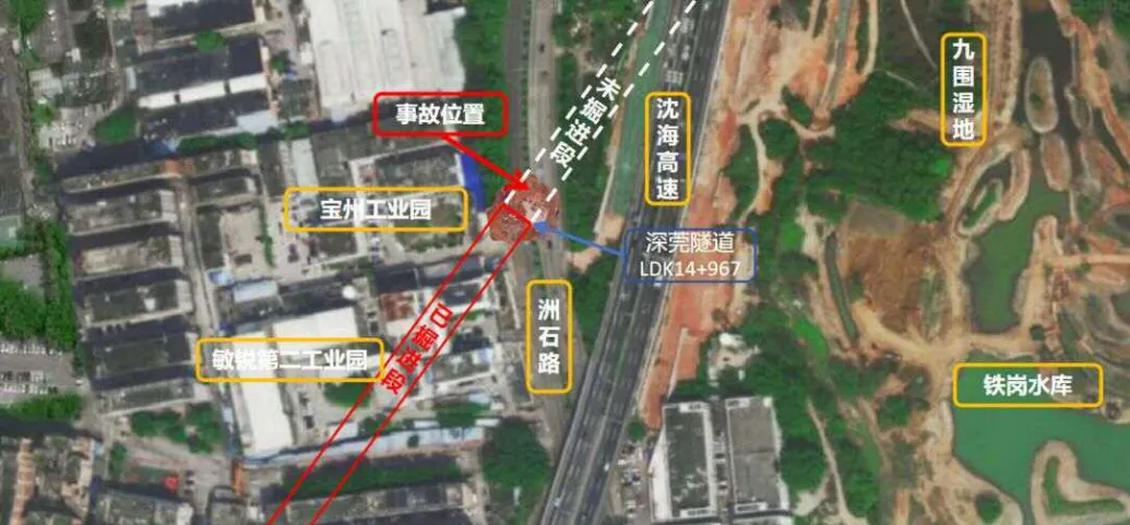 2024年12月4日23时18分,深圳市宝安区航城街道洲石路新建深圳至江门铁路5标段施工现场发生地面坍塌,造成13人死亡,直接经济损失约7261万元。经调查,事故直接原因是:隧道施工至高环境风险地段时,围岩由原勘察设计的Ⅲ级变为稳定性差的Ⅳ级,未停止掘进,未变更为可靠的开挖和支护方式,致使掌子面上前方拱顶产生局部塌方;险情发生后,未能及时采取有效的工程处理措施,掌子面上方发生多次塌方,地面塌陷;地面应急处置不当,地面作业人员随塌陷坠亡。