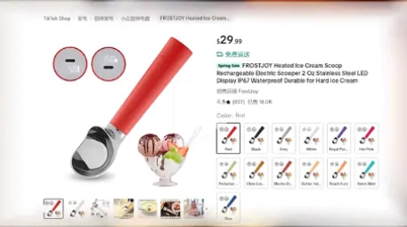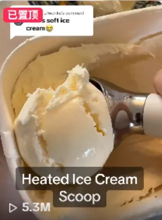 你有没有过这样的经历:从冰箱里拿出一桶刚买的冰淇淋,满怀期待地挖下去,结果勺子弯了,冰淇淋却纹丝不动? 对很多人来说,这不过是“等几分钟再吃”的小事。但对深圳一位创业者来说,这却是一个价值300多万元的生意。 最近,一款来自深圳的“黑科技”产品——电热冰淇淋勺,在海外彻底火了。 一条短短几十秒的TikTok视频里,博主拿着这把勺子,轻轻松松地从一桶冻得硬邦邦的冰淇淋中挖出一个完美的球。视频发出后,播放量迅速突破520万次,评论区被“Where to buy?”(哪里能买到?)刷屏。这把勺子背后,是一家叫深圳市铁卫智能科技有限公司的深圳企业,其推出的品牌FrostJoy,在海外市场掀起了一股“挖冰淇淋”的新风潮。一把勺子,凭什么让欧美人为之疯狂?