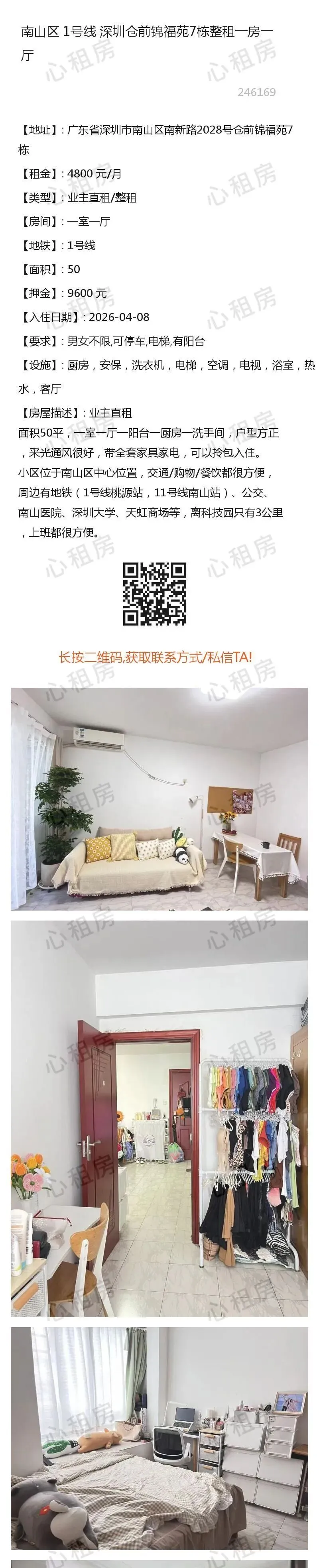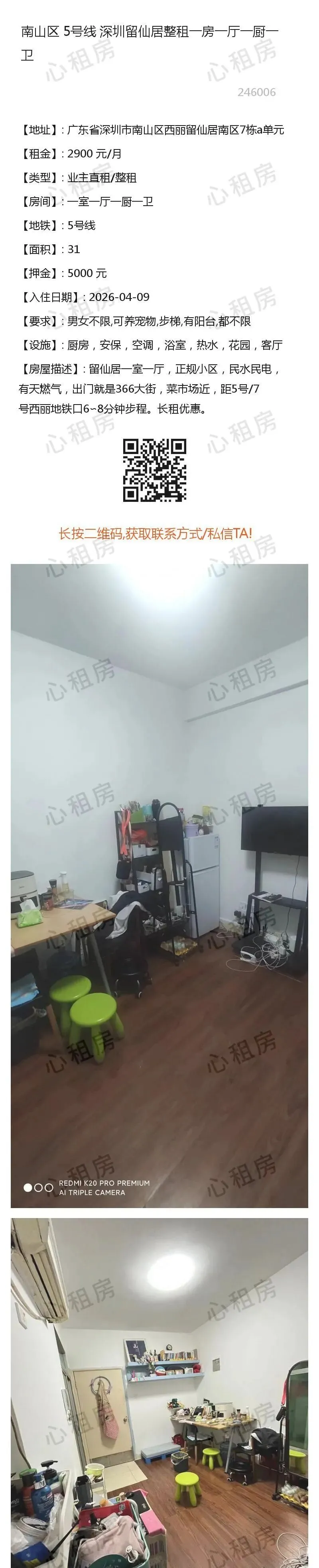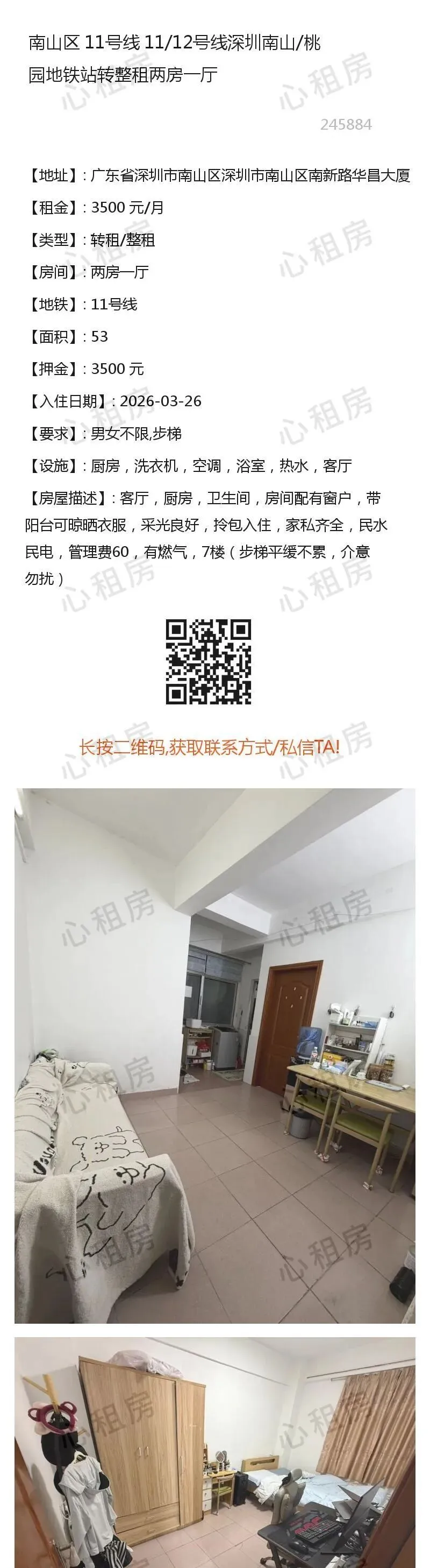 深圳租房【南山4则】房源①:7号线深圳南山新屋村转租一房一厅3000元/月;房源②:.........