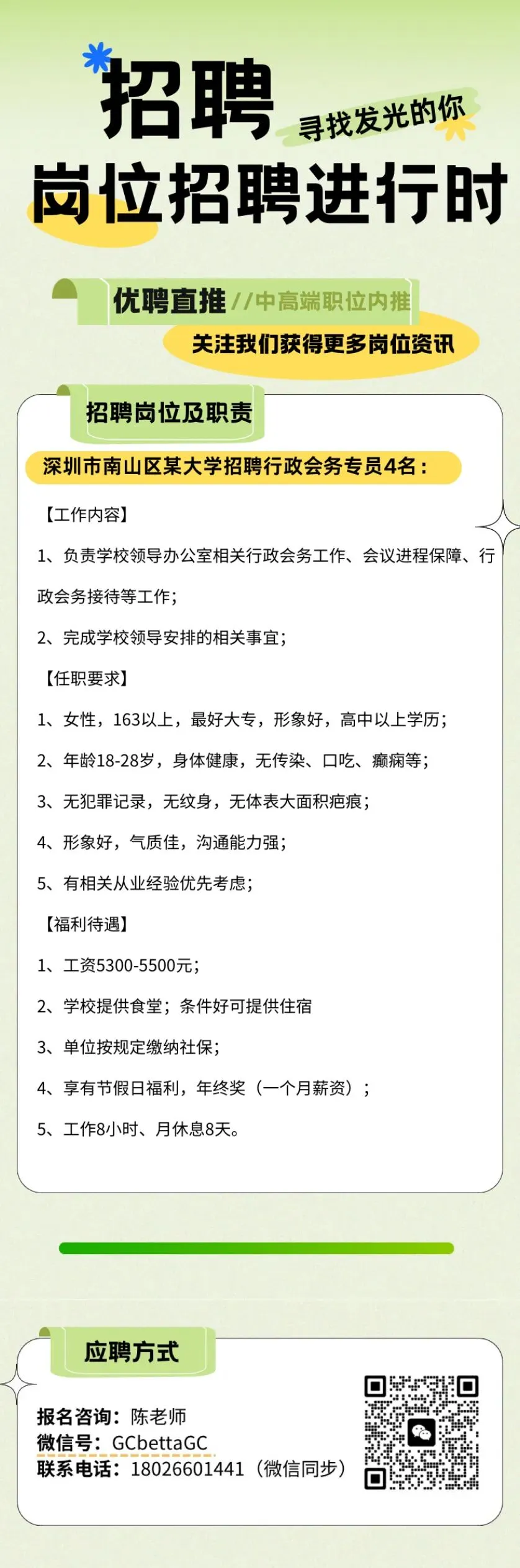 >深圳招聘|深圳市南山区某大学招聘(行政会务专员)