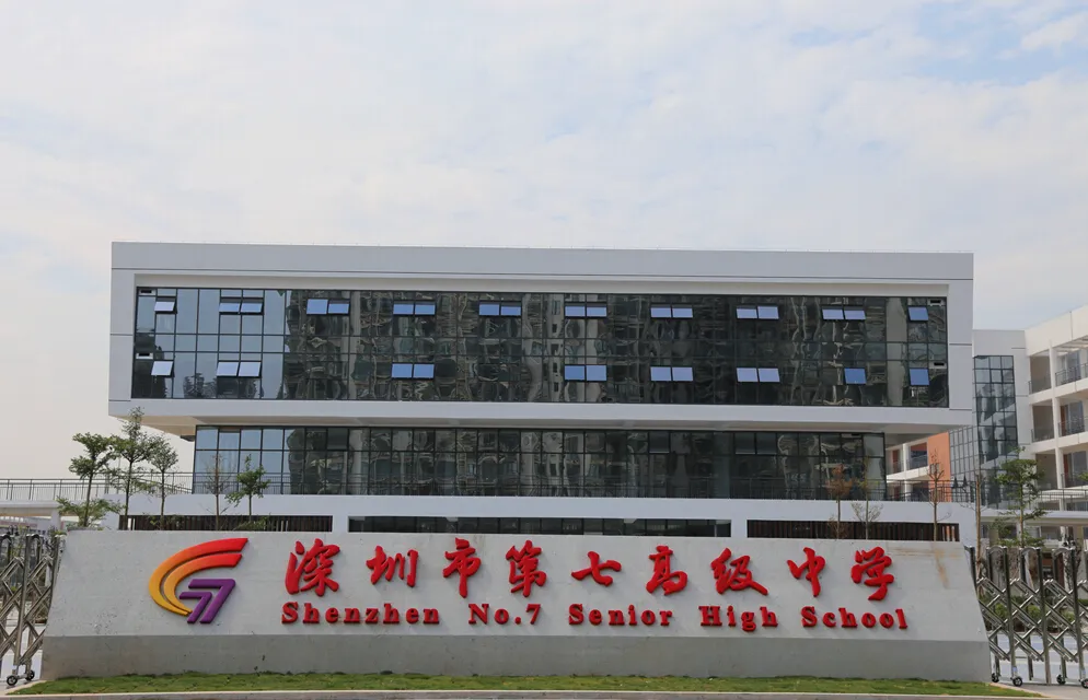 深圳市第七高级中学,系深圳市“十五”建设项目,属于深圳市政府重点民生工程,是深圳市教育局为提升深圳西部教育品质,促进教育优质均衡发展,在深圳西部投资兴建的唯一一所市教育局直属大型全寄宿制高级中学。学校位于粤港澳大湾区核心区域,紧靠大空港、国际会展中心,毗邻海上田园风景区。