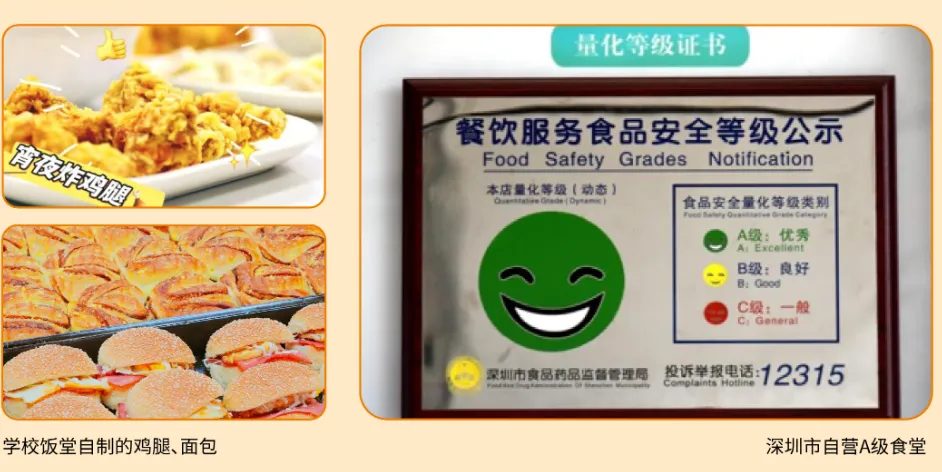 食堂:深圳市自营A级食堂,健康安全又物美价廉