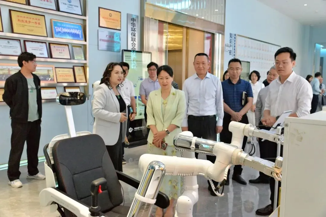 调研组一行在陈琼董事长的陪同下,深入了解企业发展历程、党建工作以及在科技助残方面的核心成果。陈琼董事长介绍,美丽魔方机器人自成立以来,汇聚国内多所高校顶尖专业人才,深耕康复助残领域核心技术研发,累计斩获多项自主知识产权专利,打造出涵盖理疗康复、智能陪护、生活辅助、精准助残等全场景的机器人产品矩阵。多款核心产品凭借高适配性、强实用性的特点已实现规模化量产,切实为残疾人群体康复训练、日常照料提供了专业科技支撑。