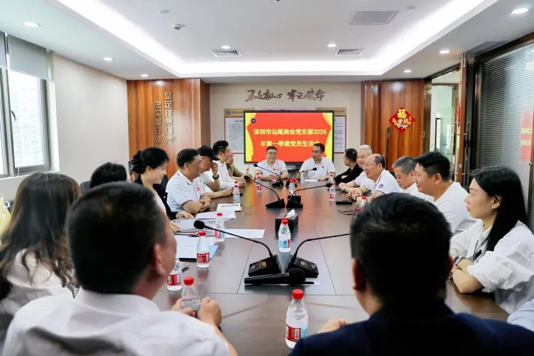 2026年3月19日下午,受黄耀文会长委托,深圳市汕尾商会党支部第一季度党员大会在商会龙华办公会所会议室召开。本次会议以“深入学习贯彻习近平总书记重要讲话精神,以党建引领商会高质量发展”为核心议题,旨在凝聚支部共识、明晰奋进方向,推动党建工作与商会事务深度融合、同频共振。会议由周伟明书记主持。
