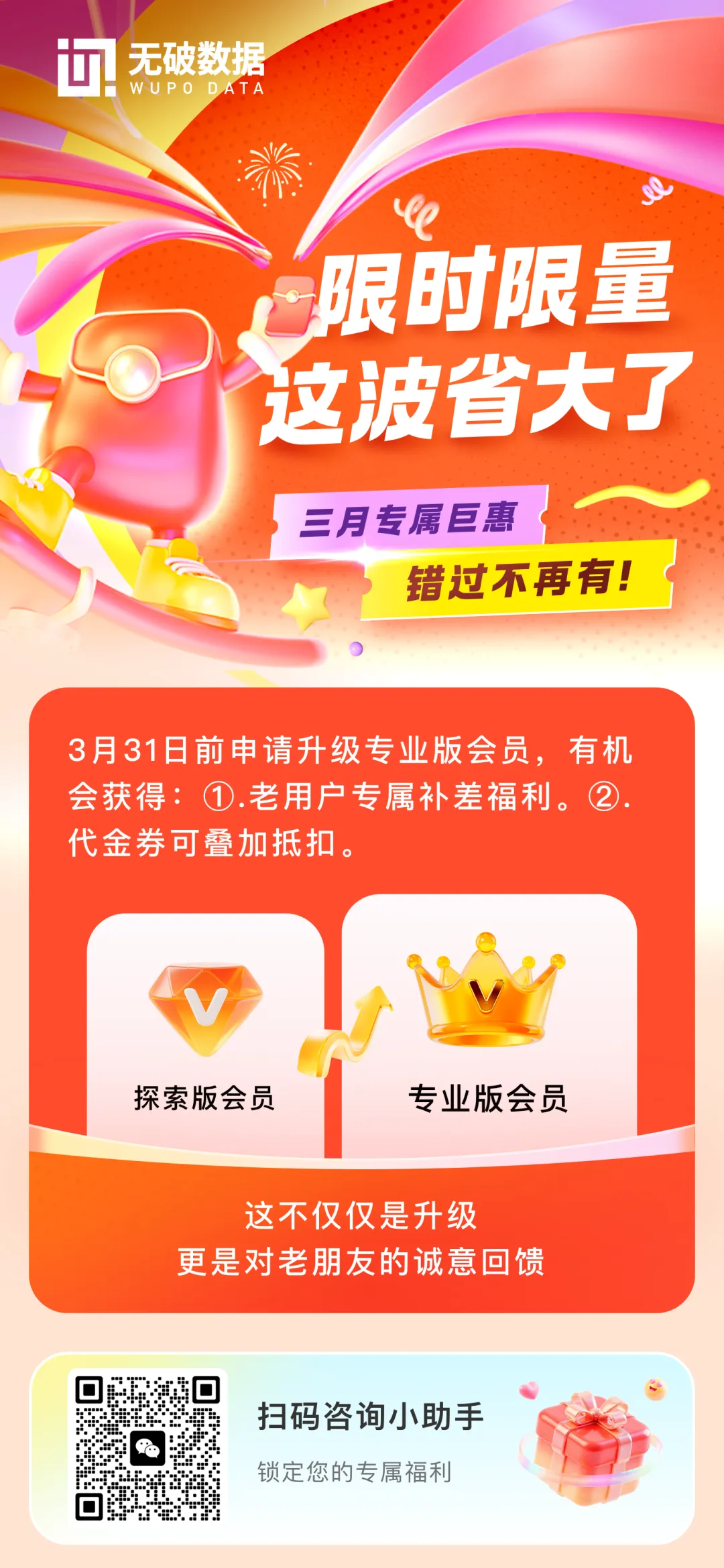 为了感谢老用户的一路陪伴,我们特意申请了这次三月专属的升级补贴。
