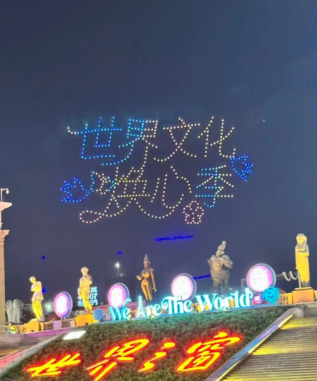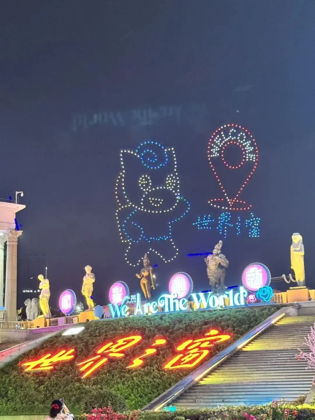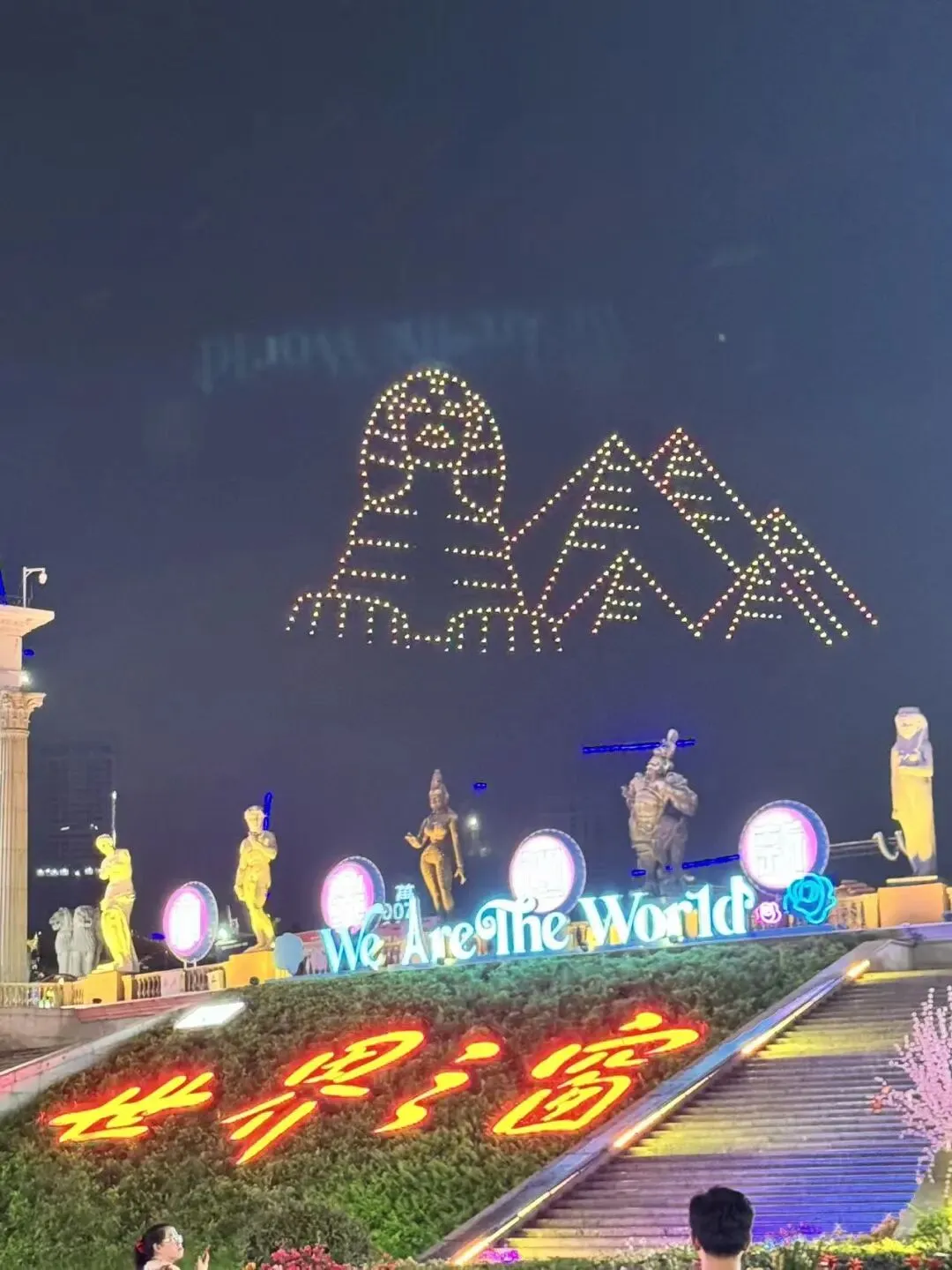 刚好赶上有无人机灯光秀,埃及狮身人面像!好厉害!