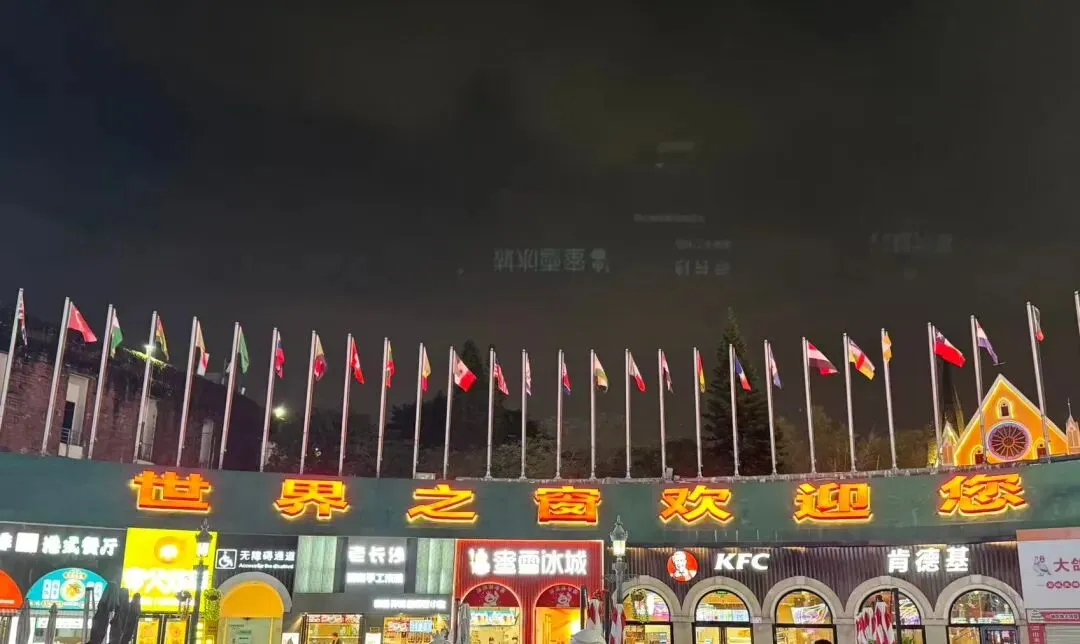 各国国旗下,好大的“世界之窗欢迎您”字样!