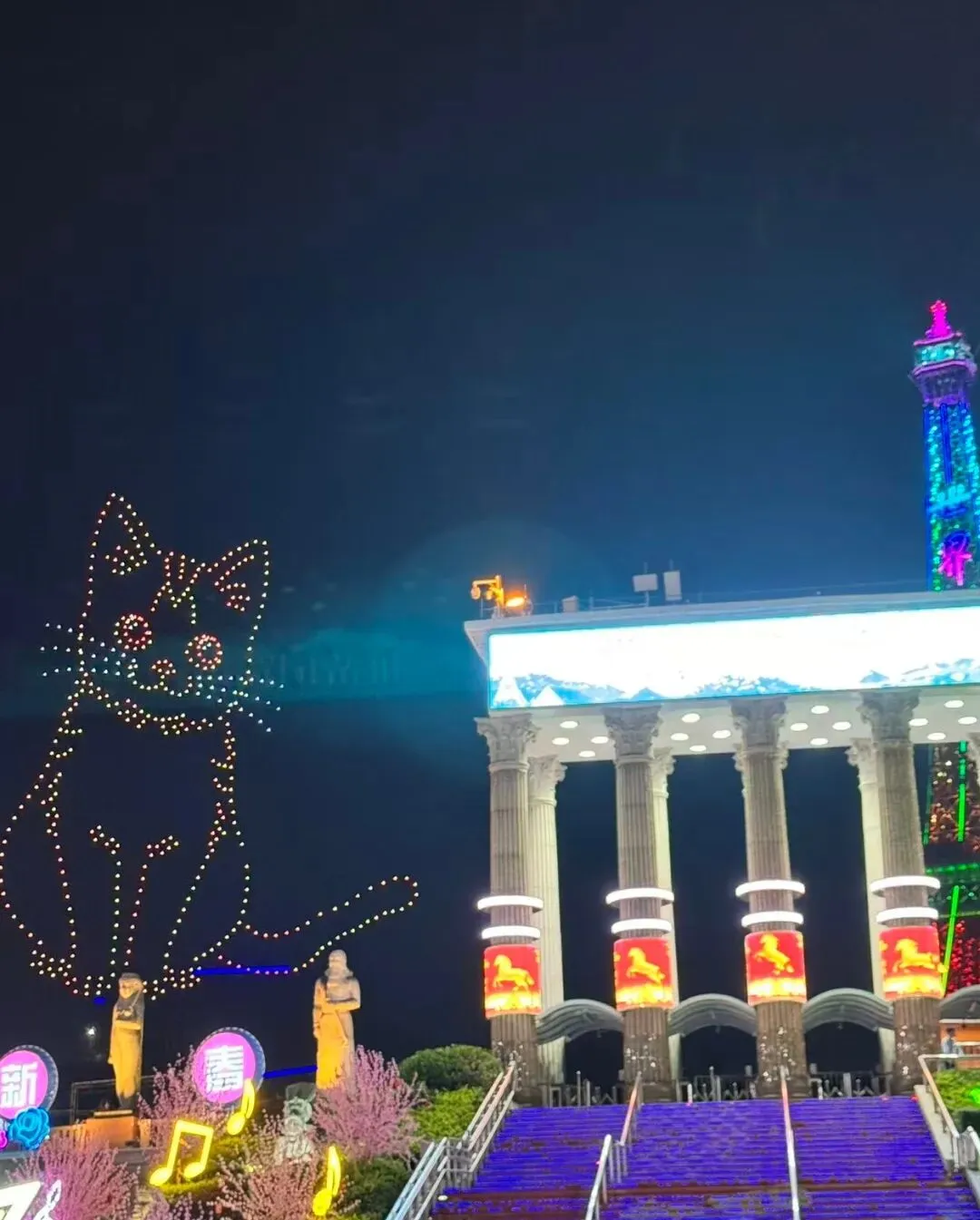无人机灯光秀,一只可爱的猫咪