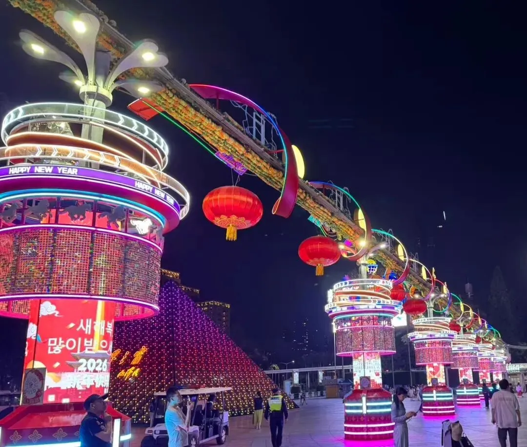 大红灯笼还高高挂着呢!因为这里春节期间通常会举办烟花表演,非常好看,会有很多的人前来观看。