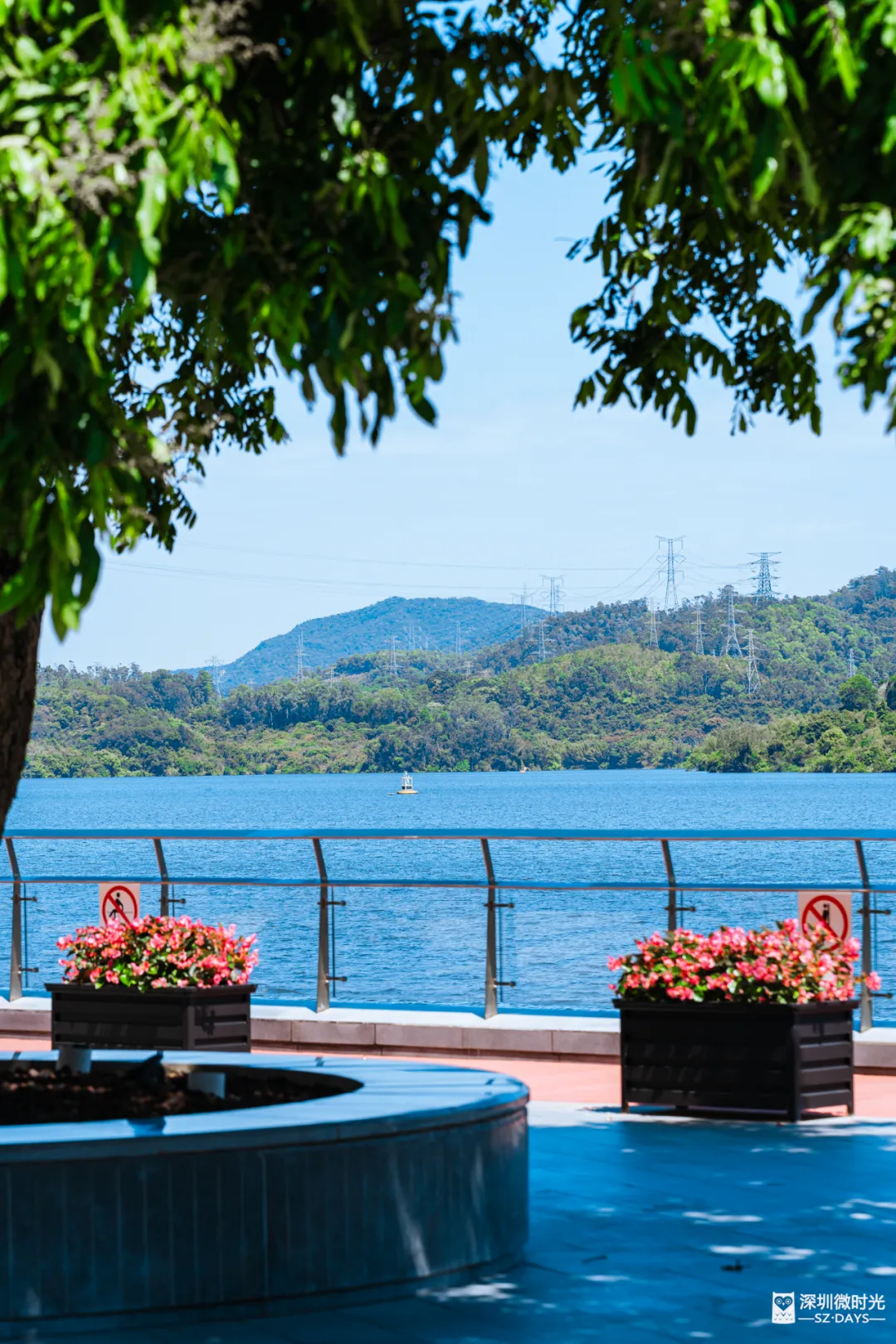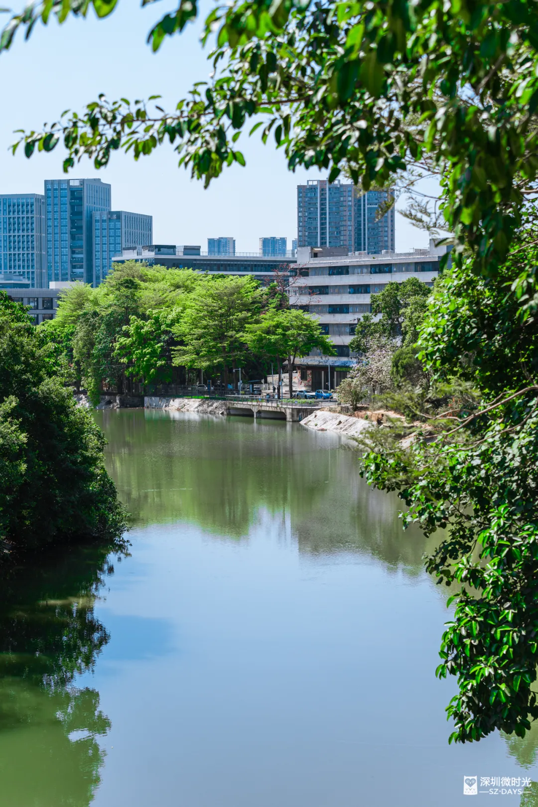 而南边,则是留仙洞总部基地的高楼挨挨挤挤,玻璃幕墙反着光,跟眼前的绿水青山就隔一道坝。钢筋水泥和自然环境挨这么近,有点魔幻,也有点深圳特色。