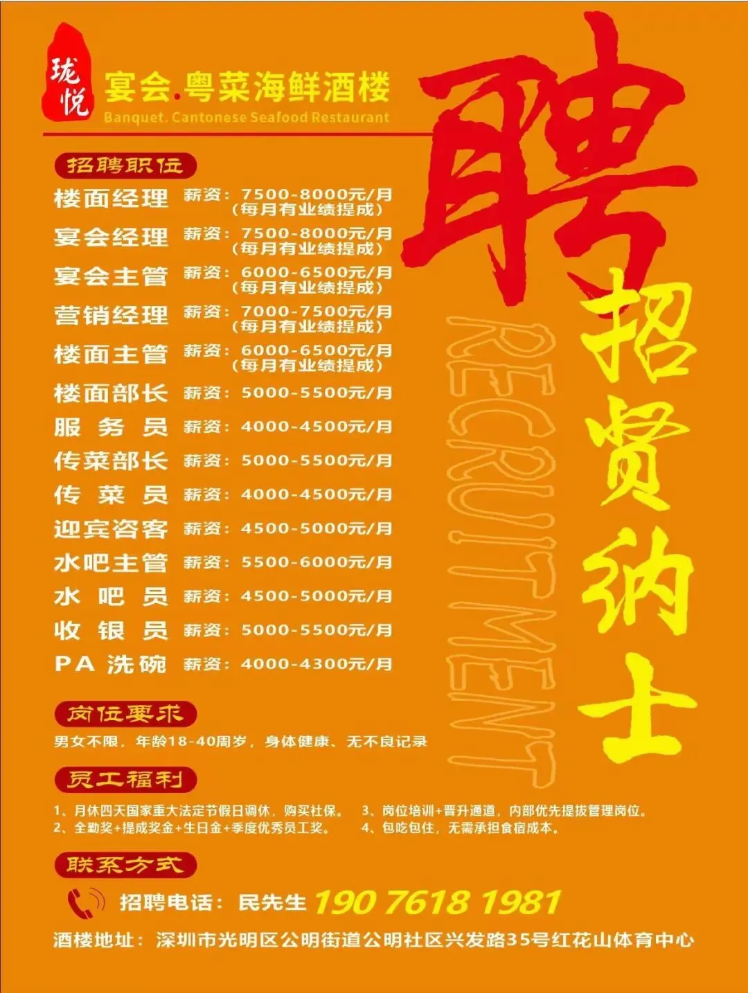 深圳福田区餐饮招聘