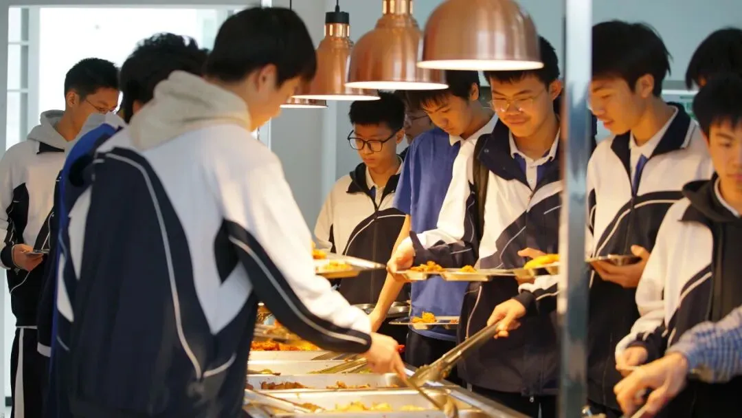 早餐20个品类、中晚餐各8个品类+水果,实行自助取餐,师生同餐;定期开展“美食意见征集”,根据学生需求调整菜品,严格落实“光盘行动”。