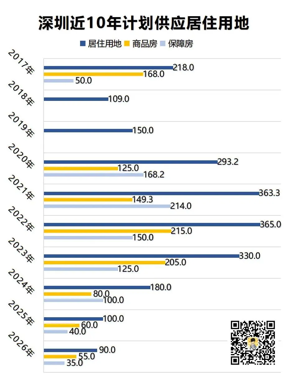 3月,深圳公布了《深圳市2026年度建设用地供应计划》,计划供应居住用地90公顷,其中商品住房用地55公顷、保障房35公顷。