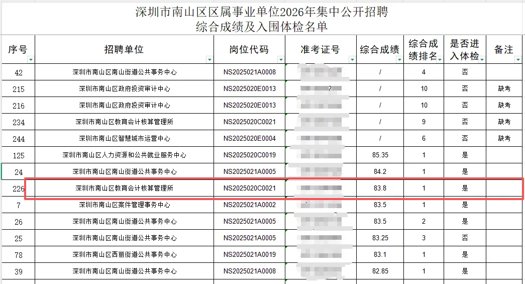 深圳市南山区区属事业单位2026年集中公开招聘面试工作已结束。根据《深圳市事业单位2026年集中公开招聘高校毕业生公告》要求,现就相关事项公告如下: