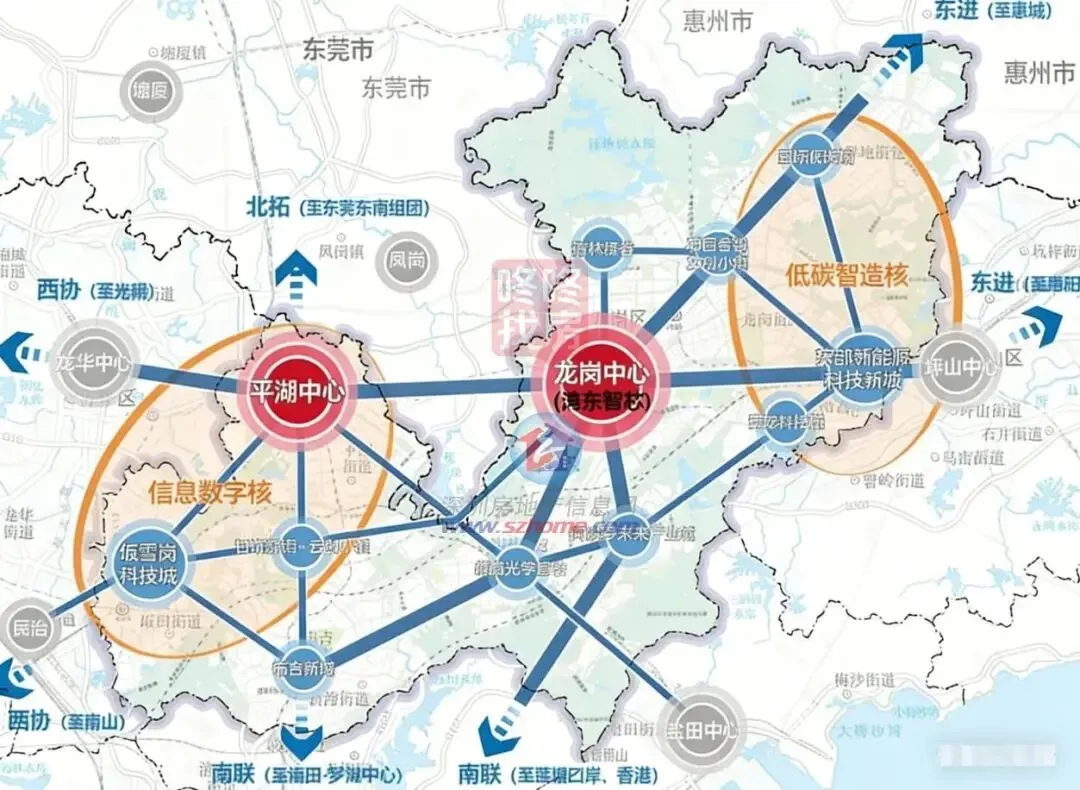 规划以龙头企业科技创新为引领,构建便捷高效的区域综合交通网络,推动产业创新与公共服务深度融合,贯彻站城一体化理念,与坪山中心协同打造深圳东部门户枢纽,重点发展新能源战略性新兴产业及配套生产性服务业。