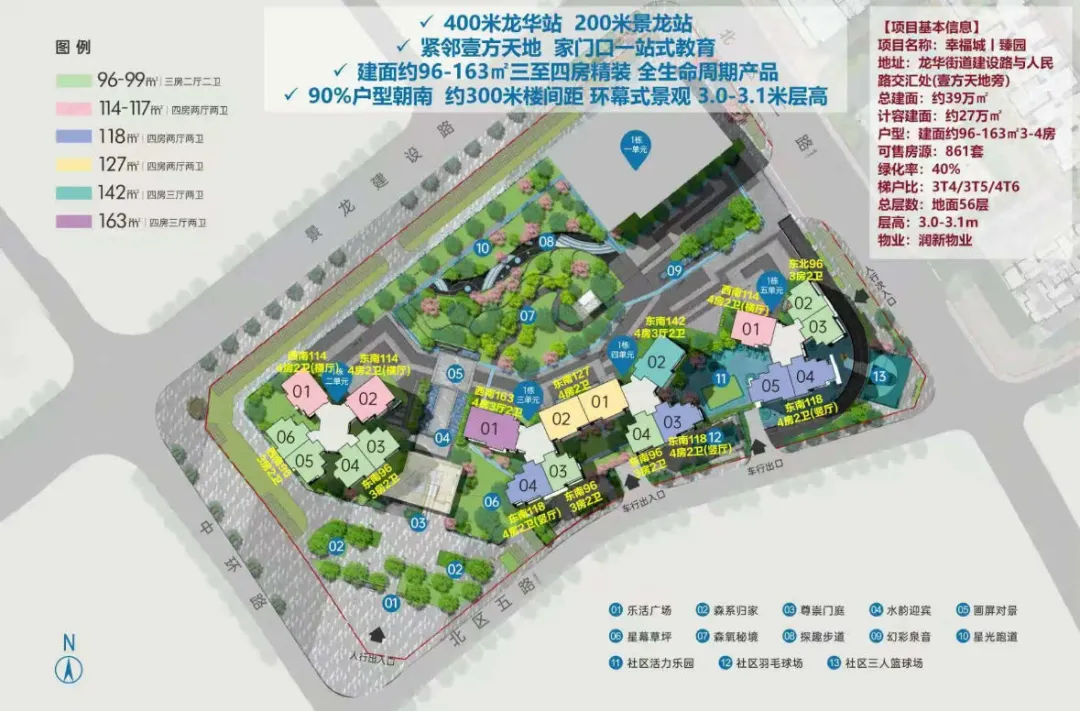 幸福城臻园,虽然整体的设计户型偏大,入手门槛却低,99平三房在410万起,该项目一路之隔即是鸿荣源壹方天地购物中心,家门口龙华第二实验学校华美校区+4/25号地铁线双站点。1号地块共5个单元:(住宅11.2万平,办公5万平)