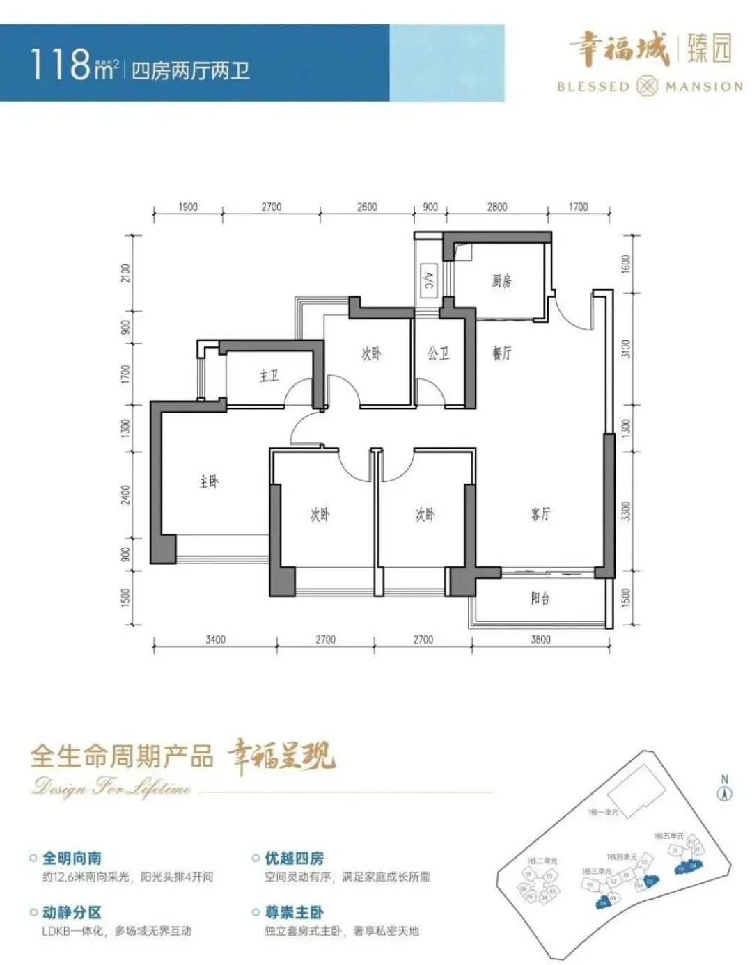 三单元:56F 3梯4户 96-163㎡3-4房;