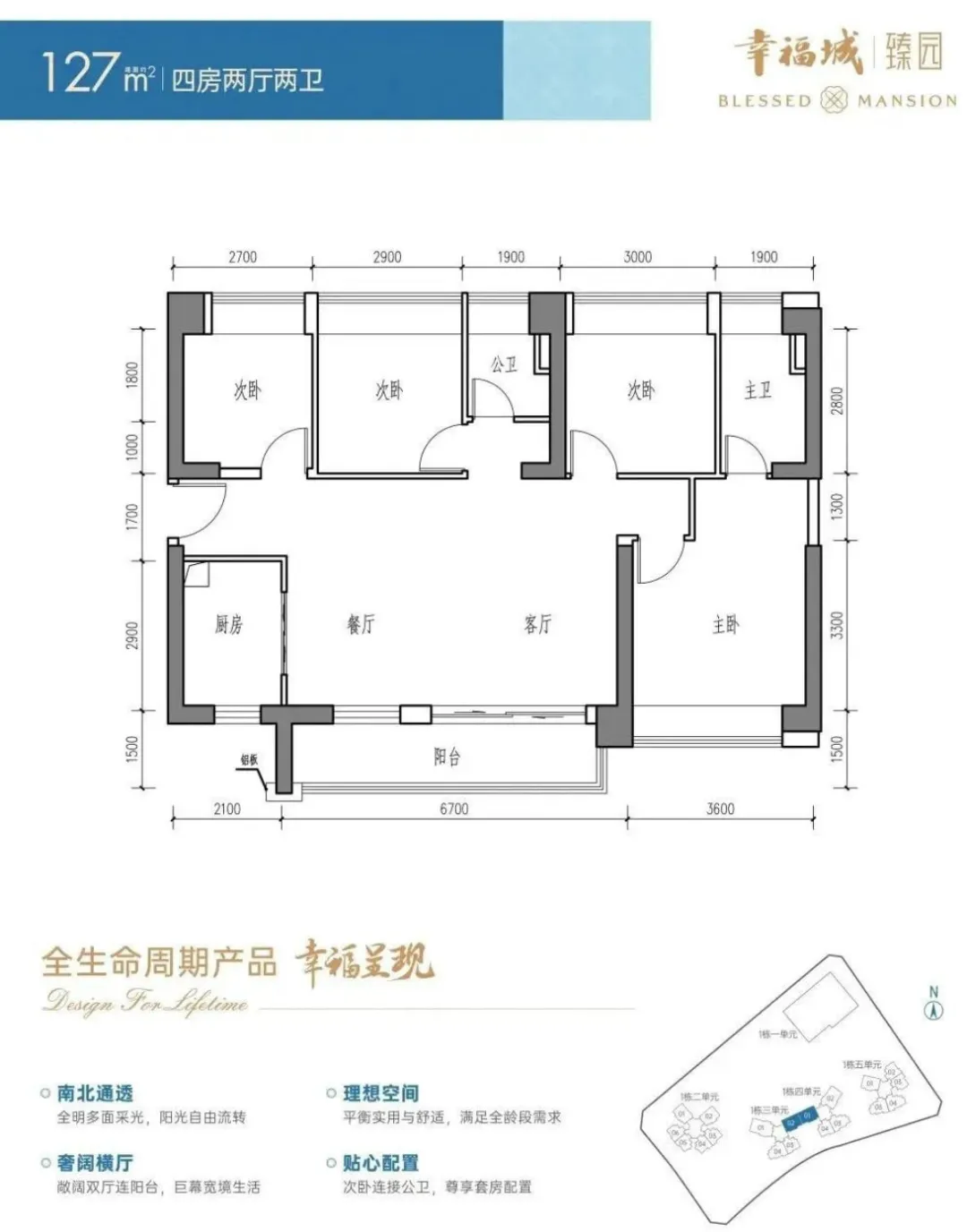 四单元:56F 3梯4户 96-142㎡3-4房;