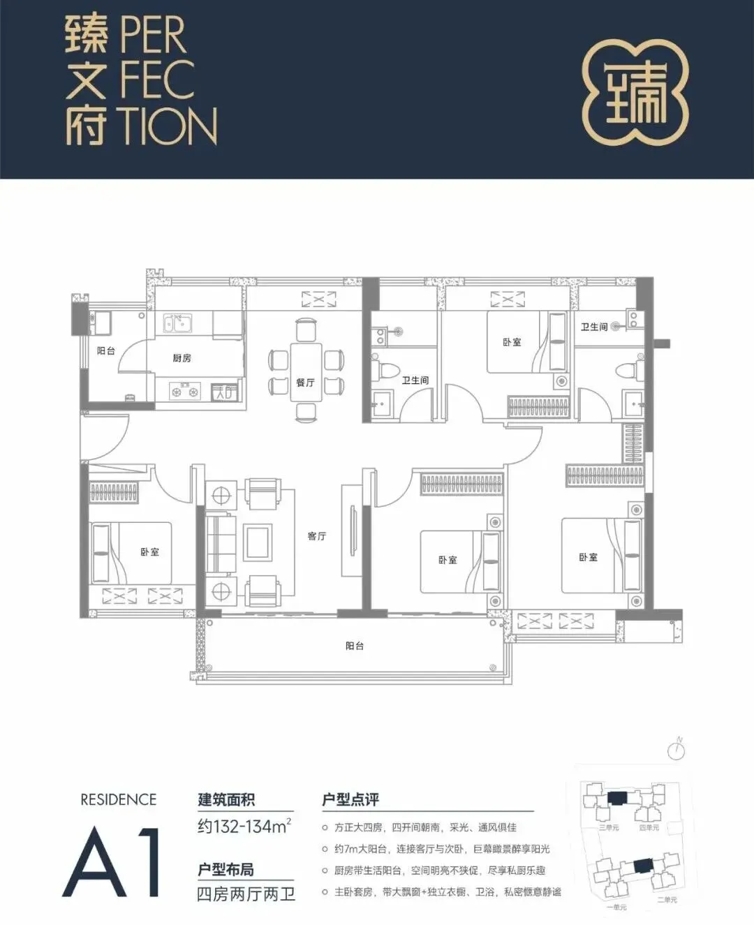 132㎡的4房2厅2卫,折后总价396-405万/套,单价3-3.06万/㎡。