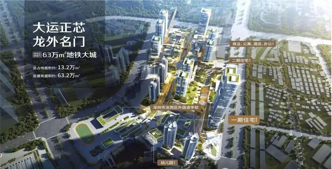 龙外本部学校旁·大运中心站规划总建面约63万㎡地铁大城