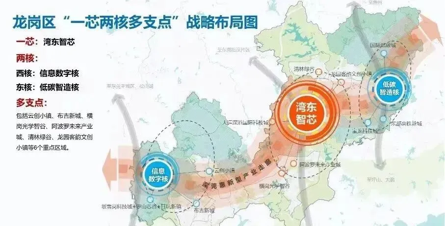 【ONE 区位定位】大运国际深港科教城根据深圳政府“十四五”《规划纲要》,龙岗的定位是深圳城市东部中心、高等教育国际合作中心、国际文体活动交流中心!2022年1月,“大运深港国际科教城”被写进广东省政府报告中。通过围绕“一芯”“两核”“多支点”主体功能布局。大运新城作为“一芯”的代表,位居“东进战略”最前沿,也是粤港澳大湾区经济腹地、辐射粤东北的“桥头堡” ,打造深圳都市圈的“东核心”。