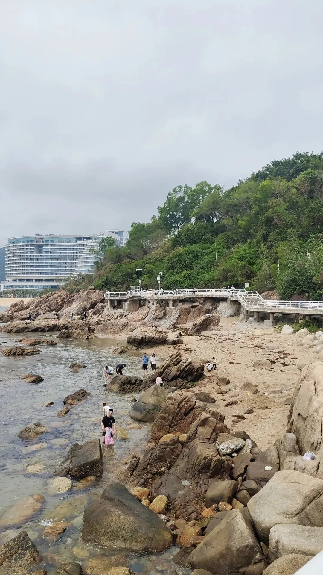 在深圳小梅沙的尽头,有一片被时光雕琢的海岸线,名曰背仔角。这里的海水澄澈如翡翠,浪涛拍岸时溅起碎玉般的浪花,仿佛天地间永不疲倦的琴弦。礁石嶙峋,如巨龙盘踞,又如古琴的残弦,每一道裂痕都镌刻着海风与光阴的私语。沙滩细软如绸,在夕阳下泛着金辉,仿佛铺展着一卷未被书写过的诗笺。我踏足此地,恍若步入一幅水墨长卷,海、礁、沙交织成永恒的韵律,而其中更藏着千年的叹息与守望。