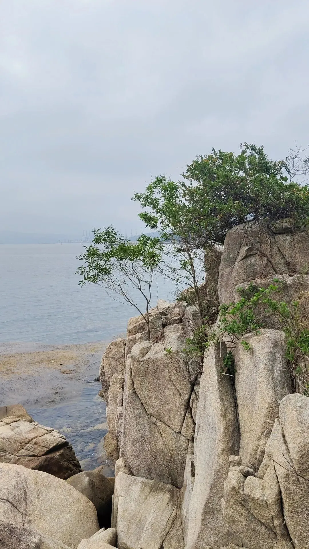 海岸线的礁石更是造物主的狂草。亿万年的海浪侵蚀,将花岗岩雕琢成千奇百怪的形态:有的如巨象饮水,长鼻探入碧波;有的似老僧入定,面朝大海冥思;更有成片的风动石,看似摇摇欲坠,实则稳如泰山。似老者诉说着过往,潮来之时,海浪撞在礁石上,碎成漫天银花,涛声阵阵,如钟鼓齐鸣;潮退之后,礁石裸露,缝隙间藏着贝壳、小蟹,藏着大海温柔的馈赠。古人云“千淘万漉虽辛苦,吹尽狂沙始到金”,这礁石便是大海千淘万漉后的坚守,任凭风浪起,兀自岿然不动,一如这片土地上生生不息的生灵,有着刻入骨髓的坚韧。苏轼在《石钟山记》中的探幽精神,"事不目见耳闻,而臆断其有无,可乎?"背仔角的每一块礁石,都是大自然写下的注脚,等待有心人前来解读。