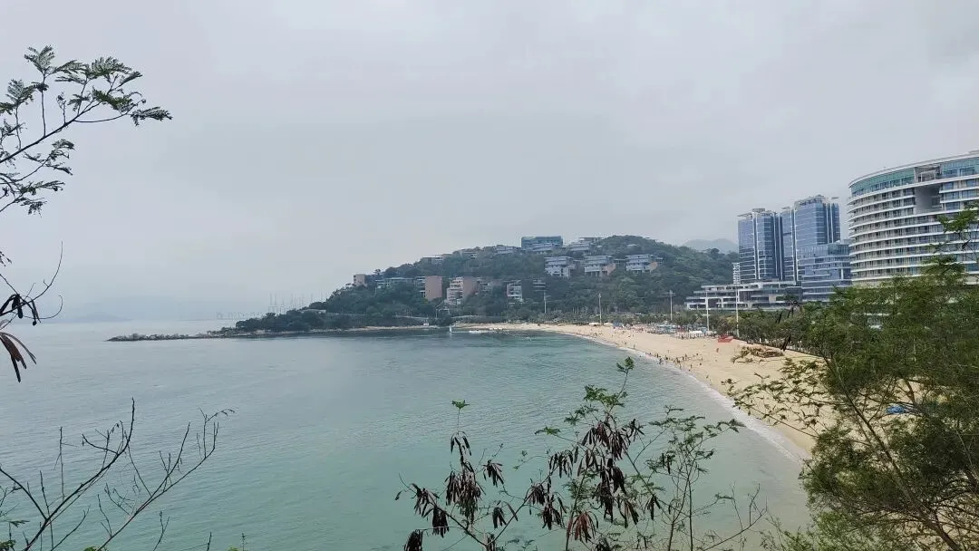 从大梅沙往东,海水由浊黄渐次澄碧,至背仔角忽然化作一泓透明的孔雀蓝。这不是马尔代夫式的浅蓝,而是深海与浅滩交汇处独有的层次——近岸处清澈见底,可见成群的小鱼在礁石间倏忽往来;向外十余米,海水陡然加深,颜色由青绿转为靛蓝,如一块巨大的渐变宝石镶嵌在陆地边缘。潜水爱好者称这里为"深圳玻璃海",晴天时阳光穿透水面,在海底白沙上投下晃动的光斑,恍若龙宫散落的金箔。