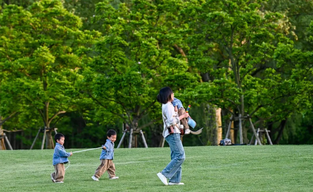 很多人来这是为了溜娃,因为这里对小孩太友好了,不是那种只有滑梯秋千的友好,而是这里有足够的空间让小孩去探索,去消耗精力。你会看到小孩在草地上疯跑,在山坡上爬上爬下,在水边研究各种小生物,这种自然环境给小孩的刺激是游乐场给不了的,因为这里每个角落都可能藏着点新鲜东西,一块特别的石头,一只蜻蜓,一棵可以爬的树,小孩的注意力会被这些真实的自然元素吸引,而不是被设计好的游乐设施牵着走。