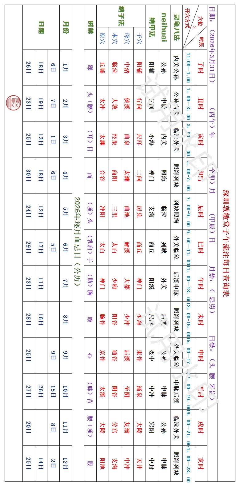 深圳敦敏堂《子午流注:今日开穴》 2026 3月31日