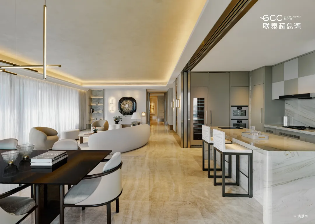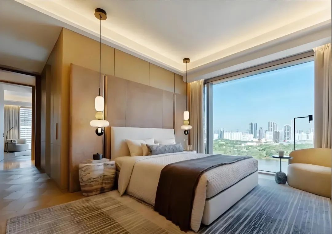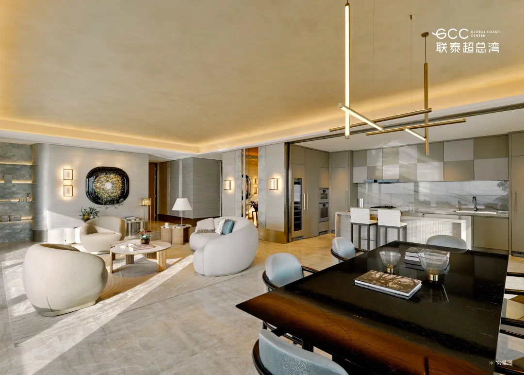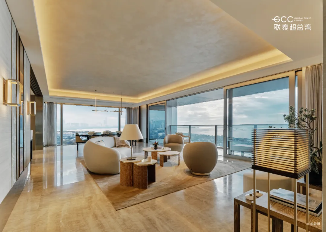 由英国皇家设计师 Kelly Hoppen 打造的 327㎡户型,以经典 “Kelly 米色美学” 为基底,融合东方禅意与西方极简,营造温润舒缓的居住氛围。270° 环幕落地窗将海景与湿地纳入室内,部分房源可享一线无遮挡海景,视野拉满。