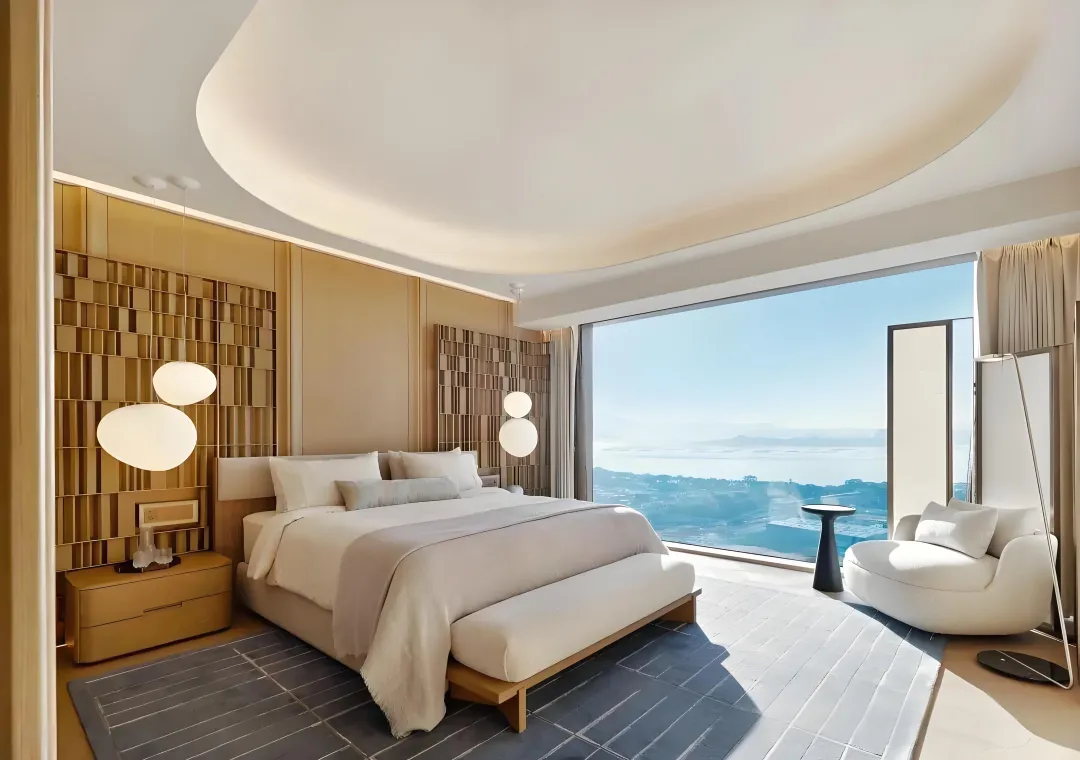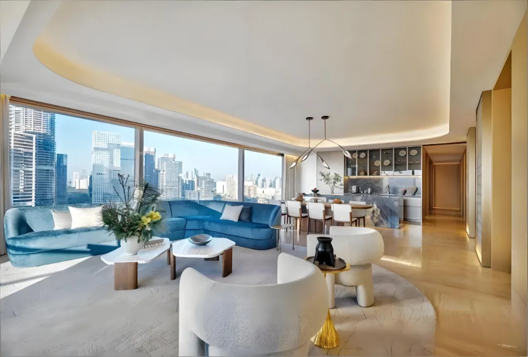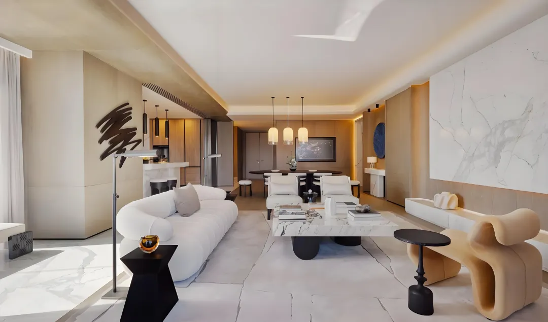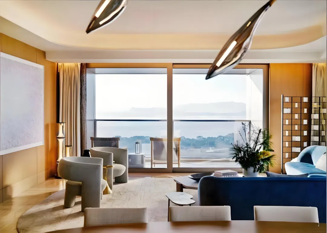 由英国皇家设计师 Kelly Hoppen 打造的 327㎡户型,以经典 “Kelly 米色美学” 为基底,融合东方禅意与西方极简,营造温润舒缓的居住氛围。270° 环幕落地窗将海景与湿地纳入室内,部分房源可享一线无遮挡海景,视野拉满。
