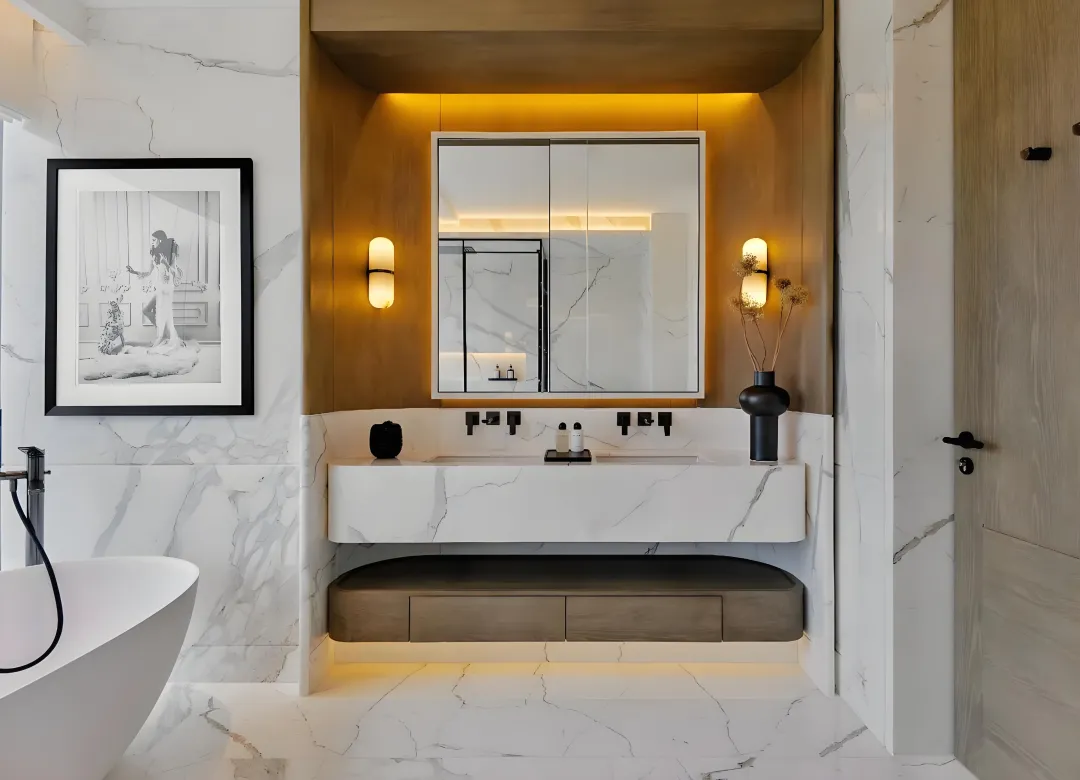 精装配置延续雅布标志性的 “极简奢华”,天然石材、定制木作与高端智能系统相融,无主灯设计打造多层次光影氛围,让空间成为生活的载体,而非单纯的展示场。