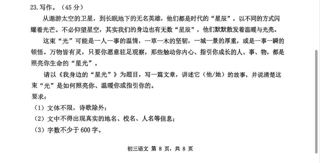 “照亮/温暖/指引”:文章必须写出“星光”对你的具体影响,不能只讲故事,要落脚到你的成长与改变。
