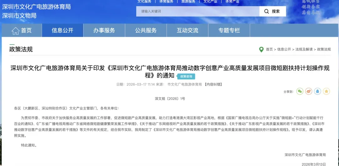 例如,深圳出台《深圳市文化广电旅游体育局推动数字创意产业高质量发展项目微短剧扶持计划操作规程》,设置11个扶持方向,单个申报单位同一批次最高可获500万元资助,全面助力深圳微短剧/AI漫剧产业高质量发展。