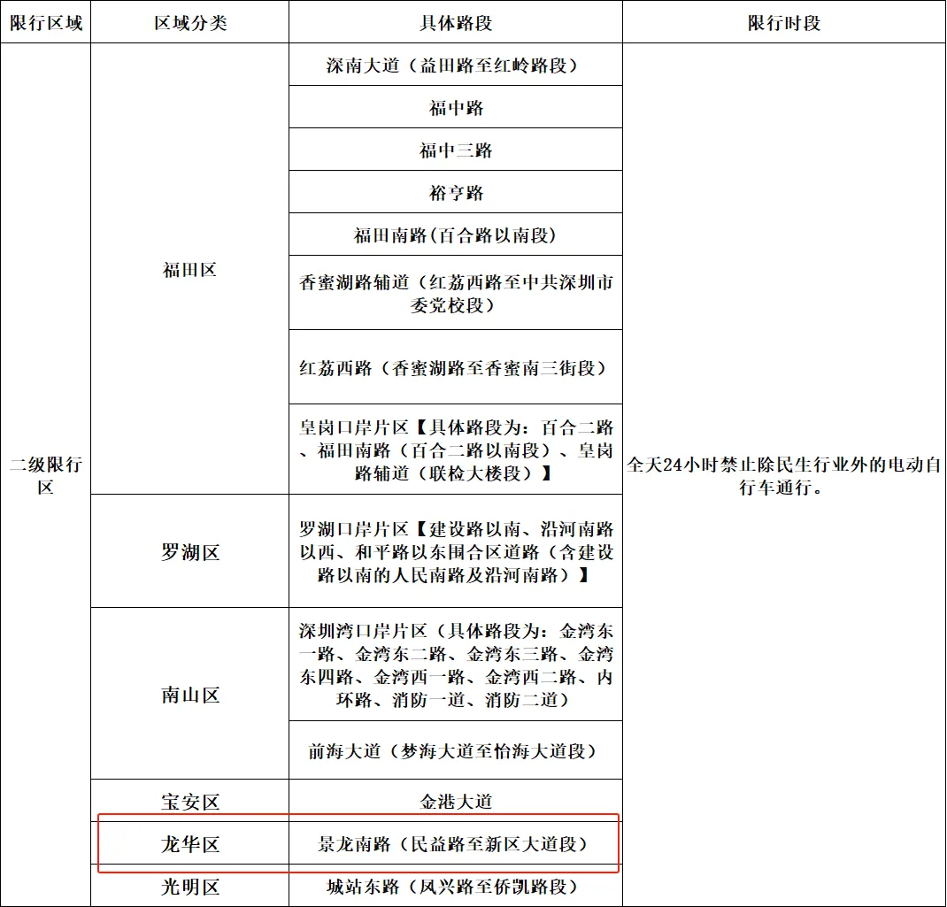 2️⃣二级限行区的道路全天24小时禁止除民生行业外的电动自行车通行。