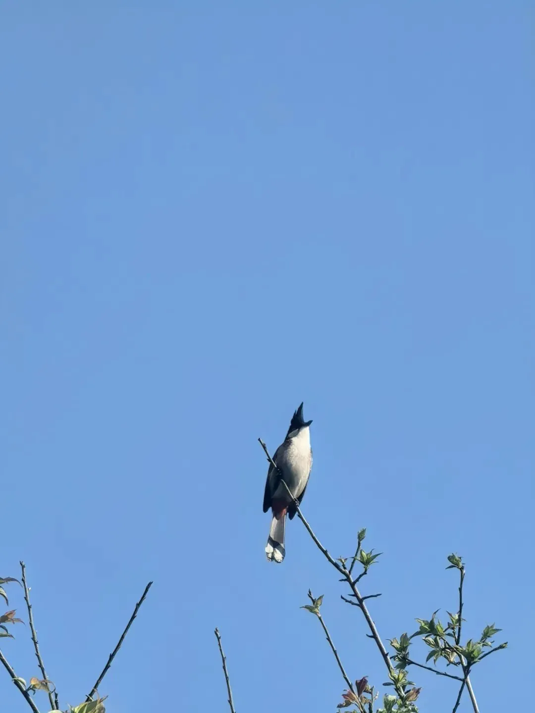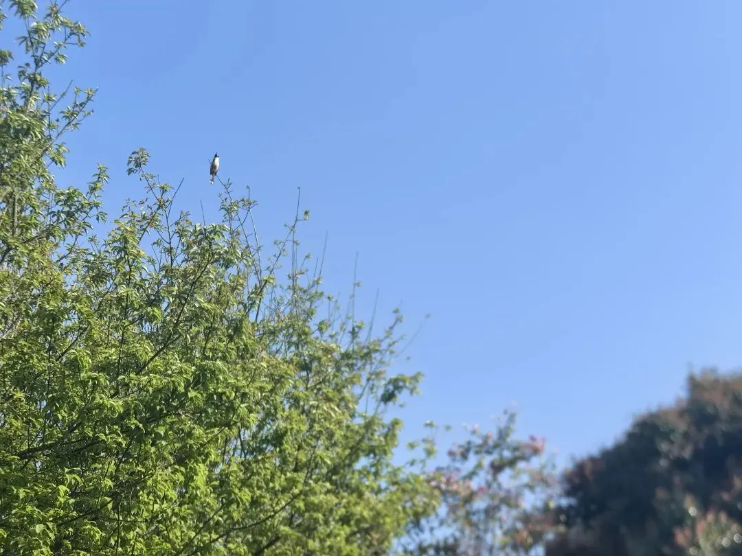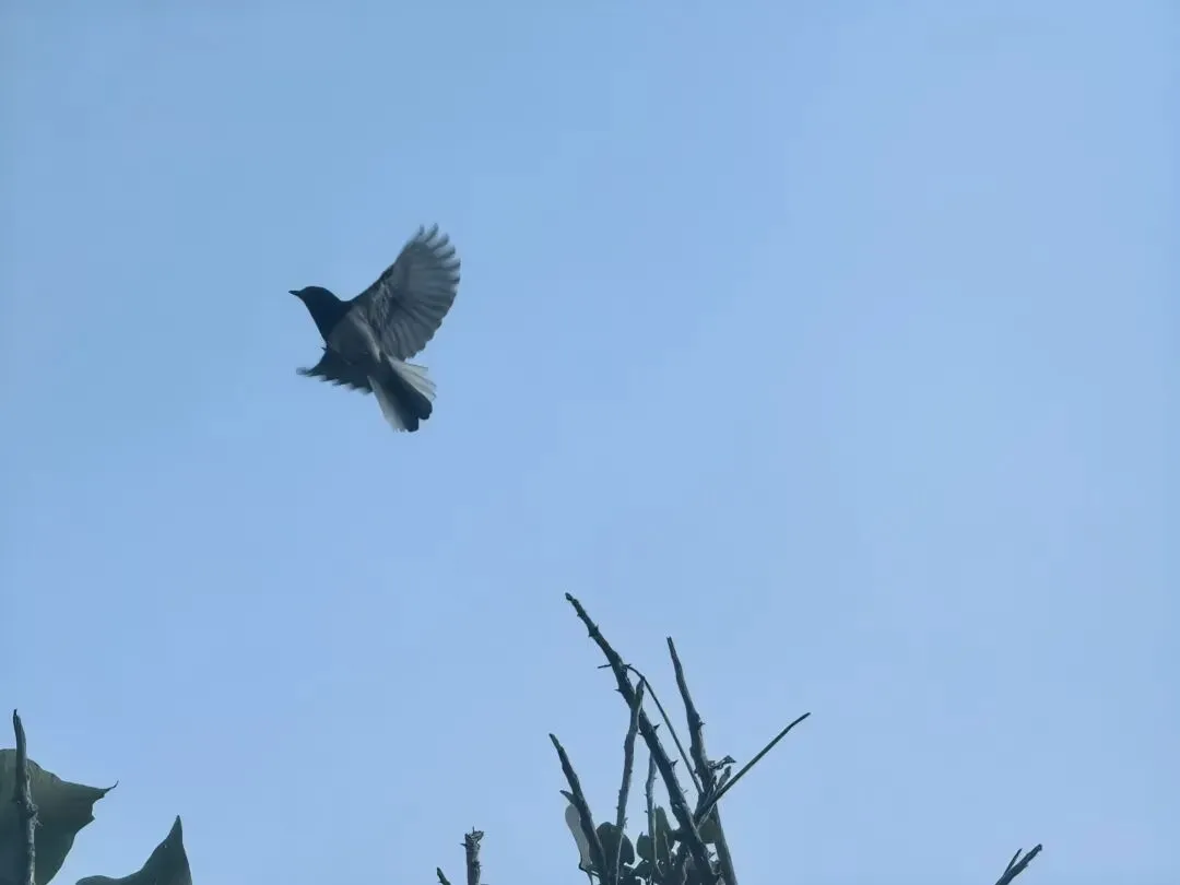 这从树的制高点,有只鹊鸲。