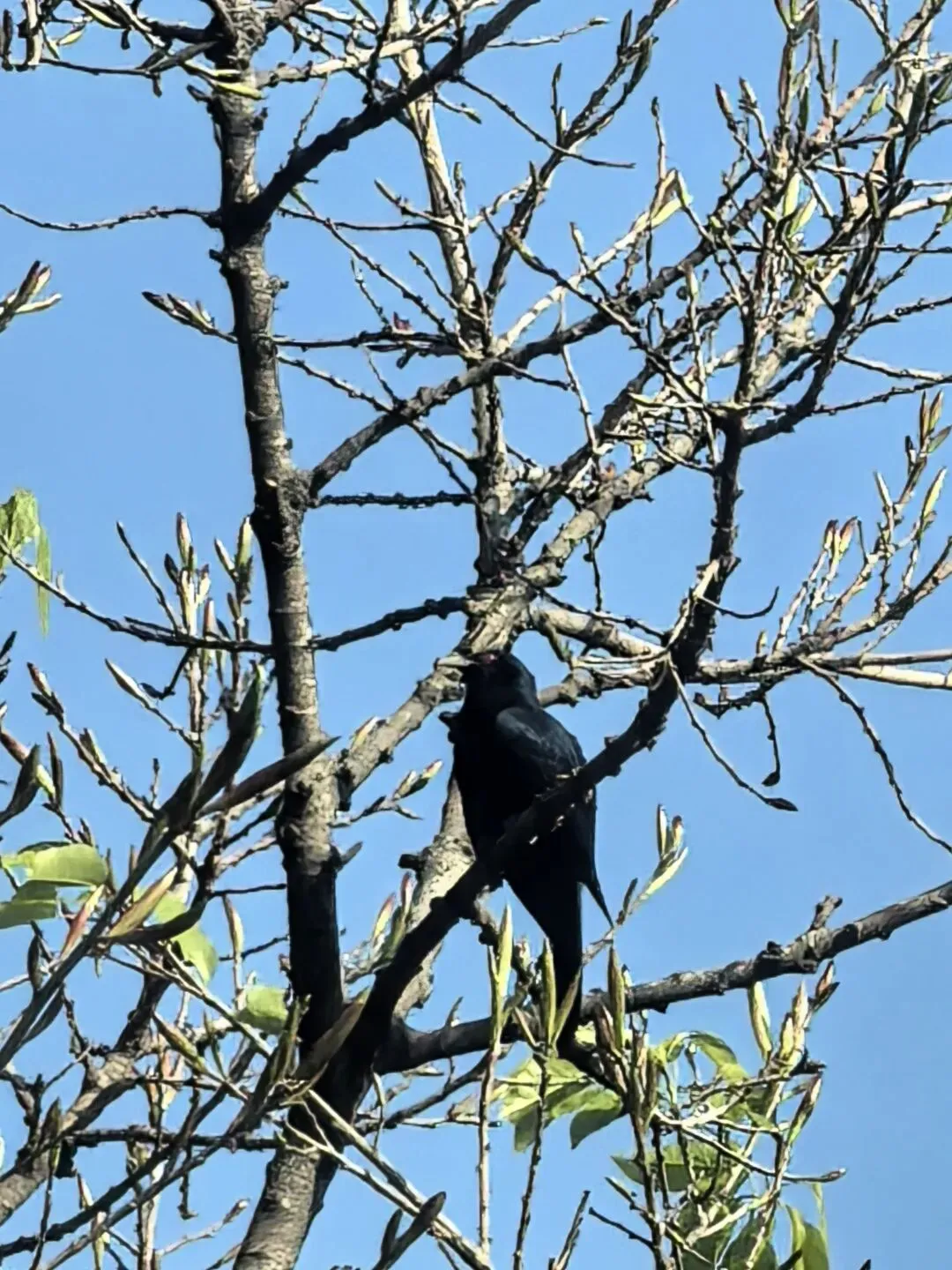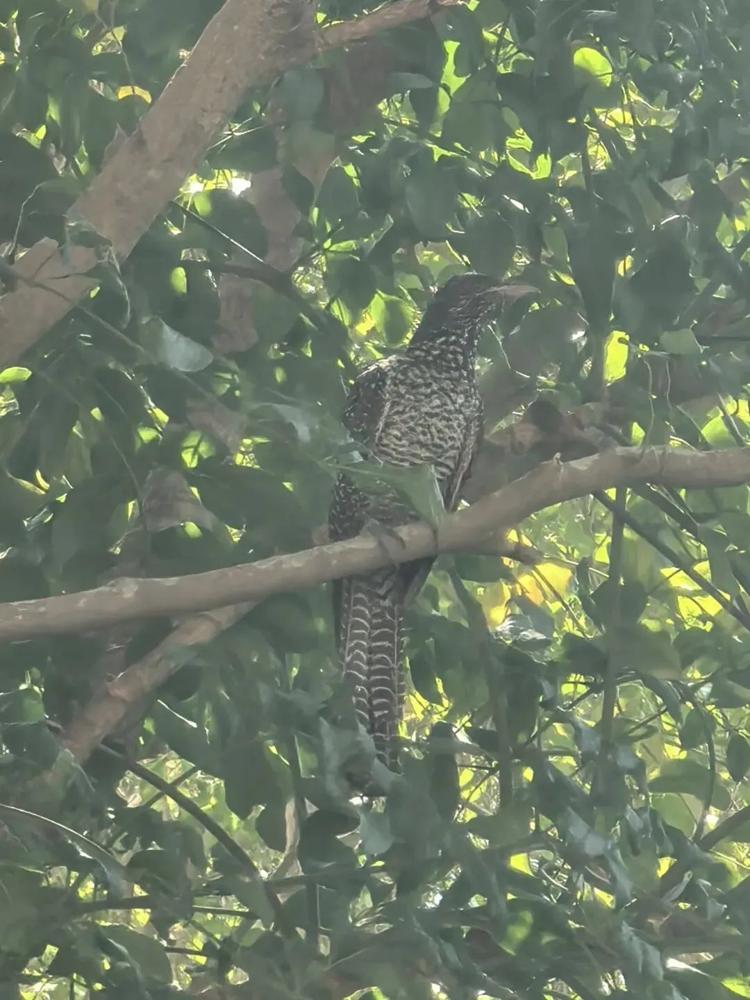 鸟形闹钟噪鹃就在中间的高叉上。