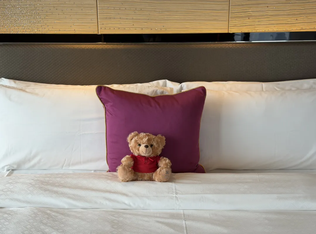 这次住的是卡罗琳艾斯特套房,仅次于总套。面积95平,跟一些酒店的基础套房不太大,不过放在瑞吉这种楼里,还是比复式套房舒服多了。这间是角套景观最好,能看到香港那边的田园。