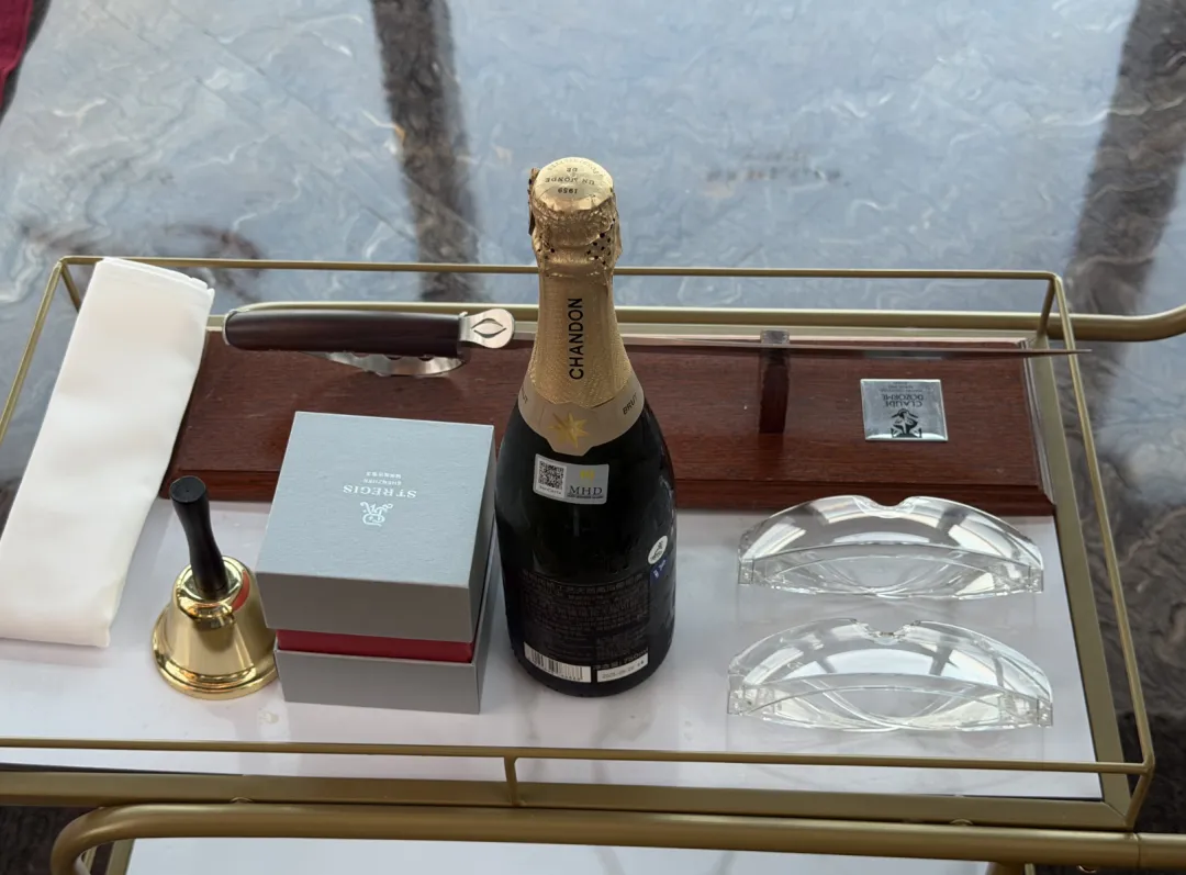 傍晚去看了马刀开香槟的仪式。瑞吉的传统项目,放在430米的高空,氛围确实不一样。