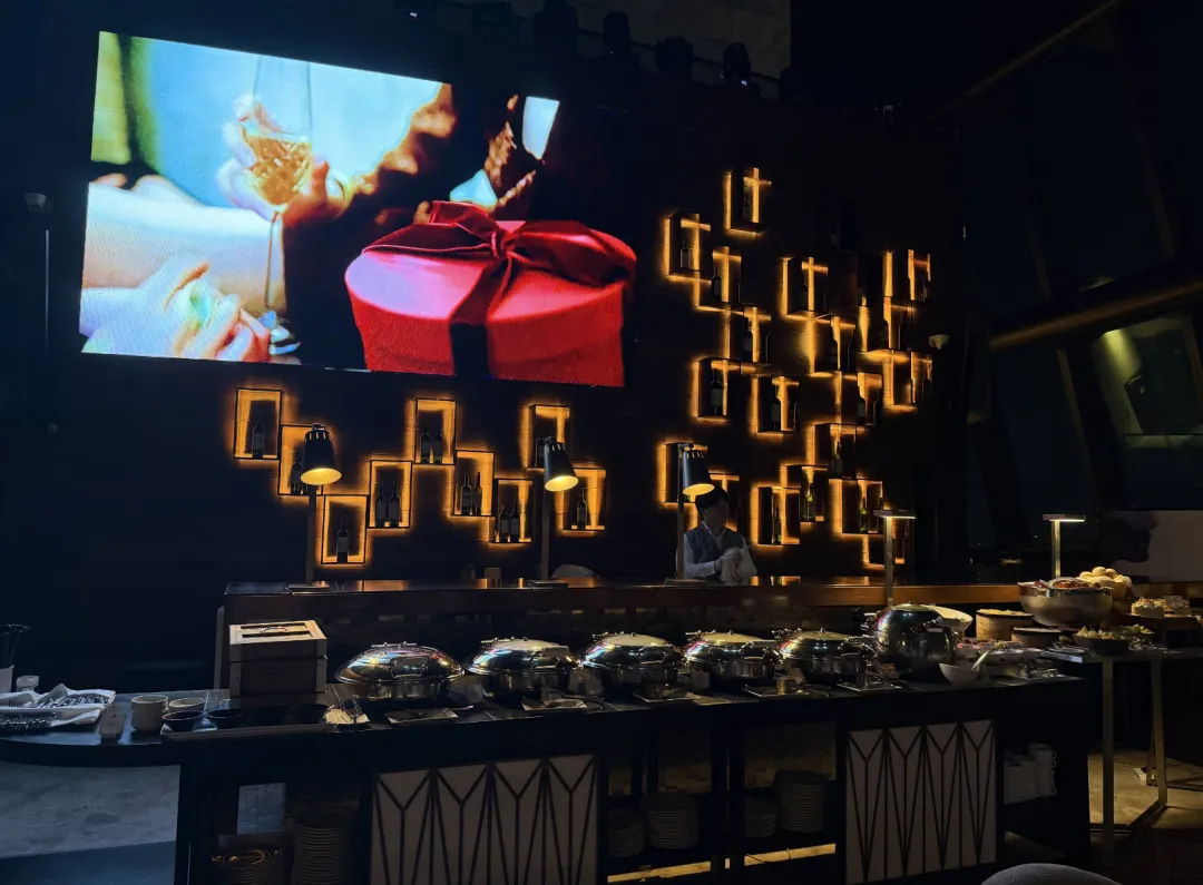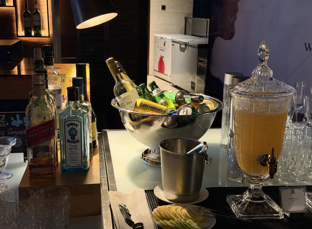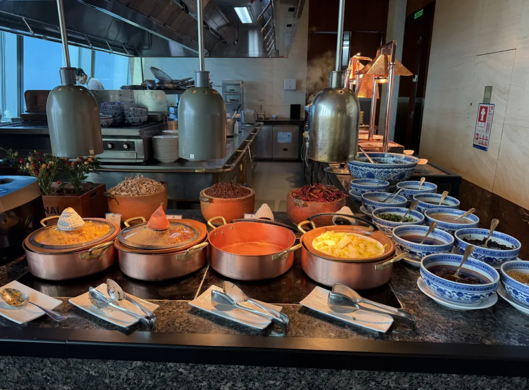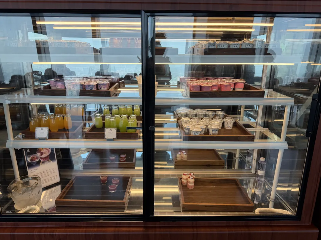 瑞吉本身不设行政酒廊,但国内几家会为会员提供傍晚的欢乐时光。这家也是,HH放在100层的瑞吉吧。菜品不多,管饱,出品还行,小蛋糕好吃。吧台的桌椅不太适合正经吃饭,但430米的高度摆在这——平时来这种高度的餐厅酒吧,消费可不低。