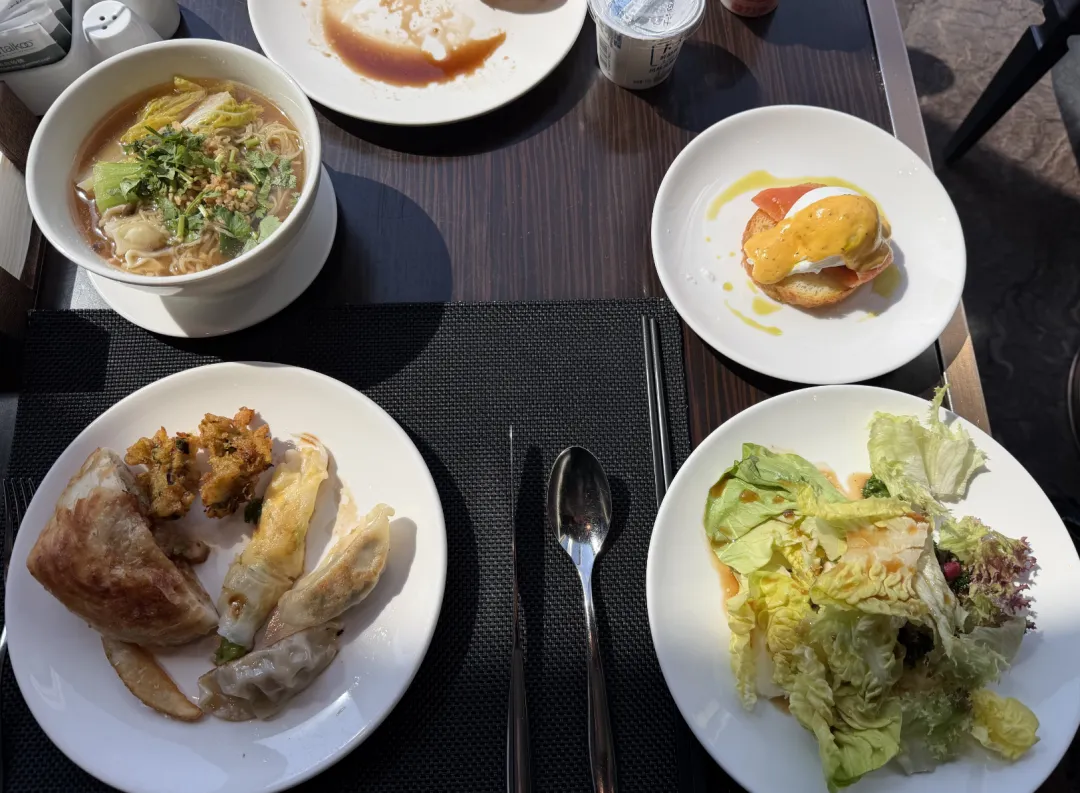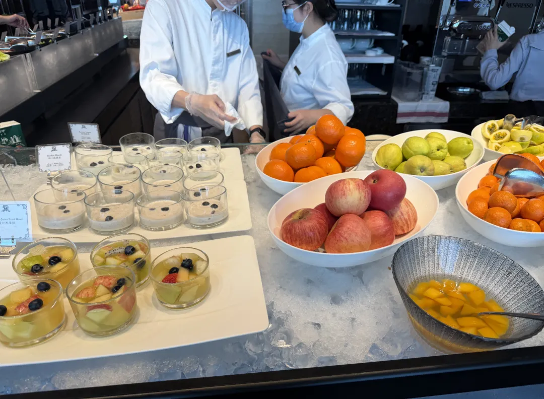 早餐是这家瑞吉做得比较好的部分。服务到位,收盘子及时。冰美式做得还行,TWG茶包随便点,鲜榨果汁有好几种。