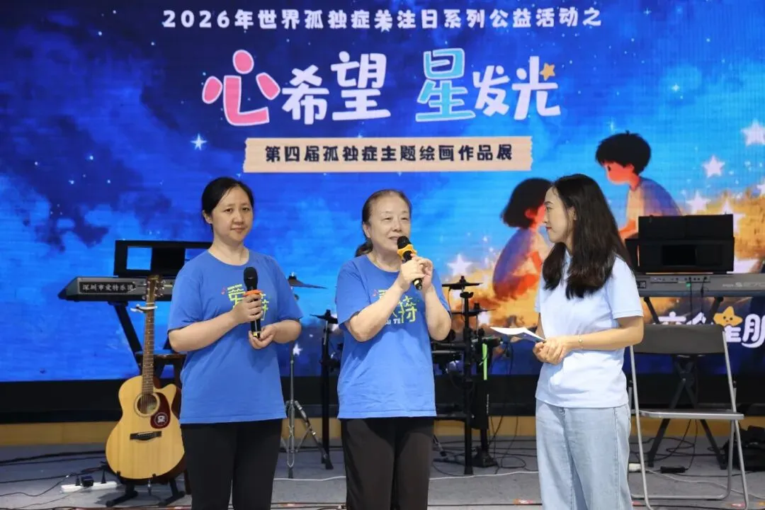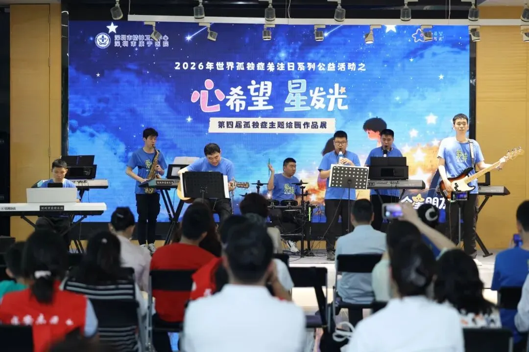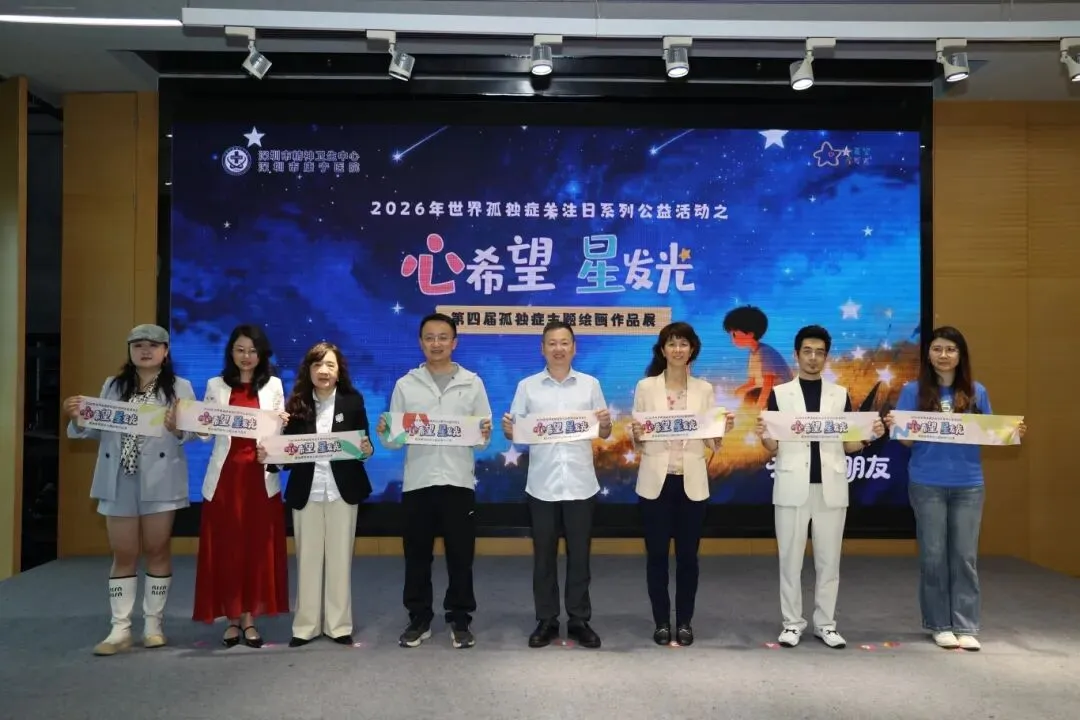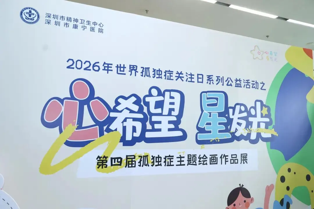 2026年4月2日,是第19个世界孤独症关注日,今年的主题是“提质全生涯服务供给,聚焦孤独症家庭支持与成年服务”。为了让更多人了解这群“来自星星的孩子”,看见他们的成长需求与生命光芒,3月28日下午,深圳市精神卫生中心/深圳市康宁医院携手深圳市宝安区阳光成长青少年社会工作促进中心在宝安青少年宫举办了第四届“心希望 星发光”孤独症主题绘画作品展,本次活动通过艺术展览、公益音乐会、多学科义诊、公益市集等丰富多元的形式,搭建起一座连接专业支持与社会融合的坚固桥梁。深圳市康宁医院副院长陈伟新、宝安区残疾人联合会副理事长张红珊、宝安团区委副书记刘思麒、深圳市康宁医院儿少精神科主任卢建平及各公益机构负责人也亲临现场,为孤独症群体发出有力的声援。绘画作品展获奖代表、媒体记者、爱心志愿者们以及众多热心市民齐聚一堂,大家怀揣着对孤独症群体的关怀与支持参与了本次活动。