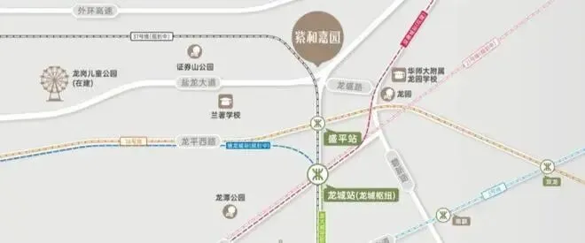 龙城枢纽站(在建),骑行约8分钟即可到达,实现快速通往全城。