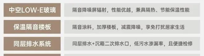 精益求精,高标准打造中空LOW- E玻璃、保温隔音楼板、同层排水系统、6S安防系统等,减少生活困扰,精工品质筑家,致敬美好生活!