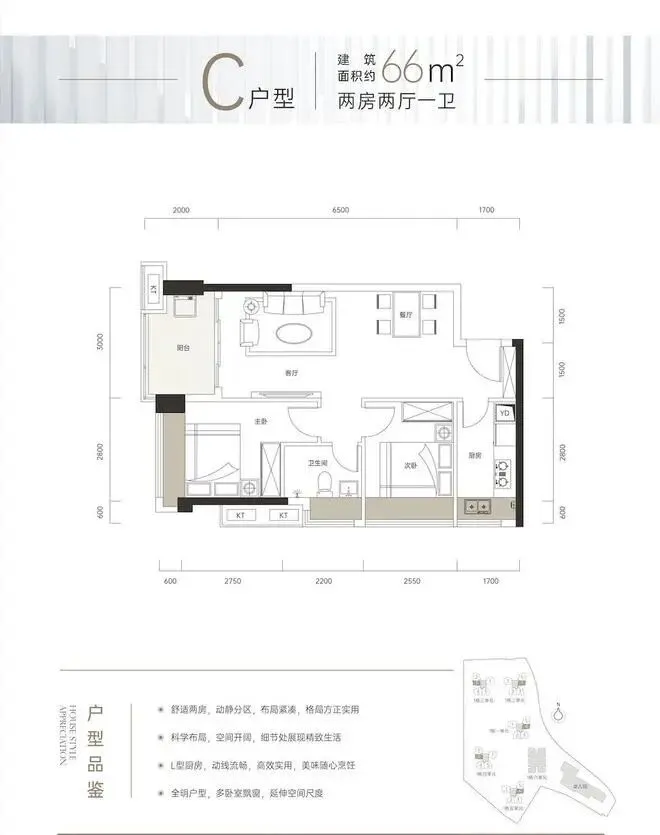 约66㎡:舒适两房,动静分区