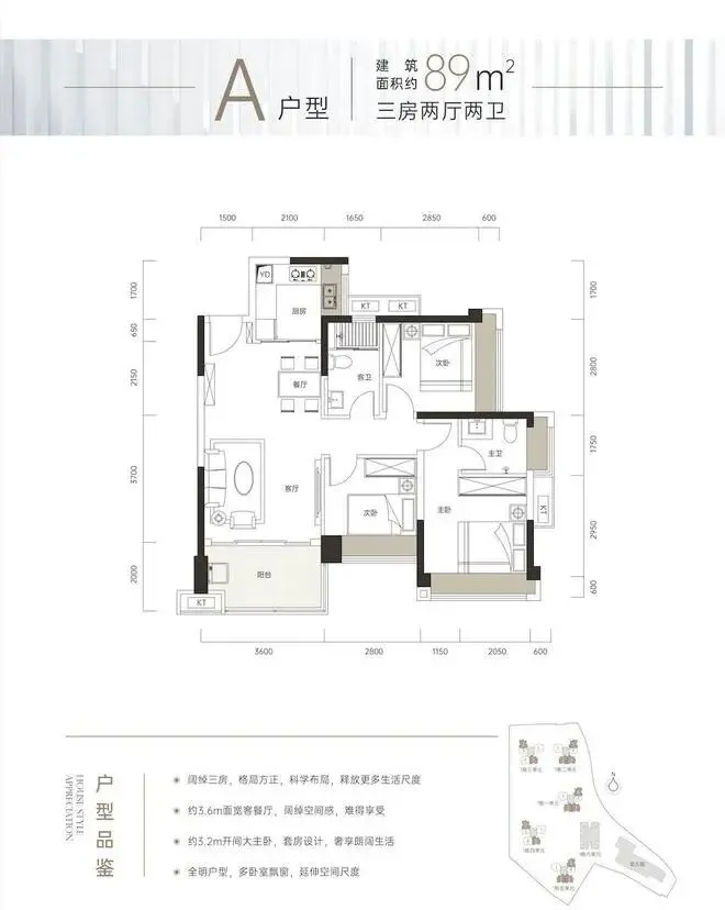 约89㎡:阔绰三房,释放更多生活尺度