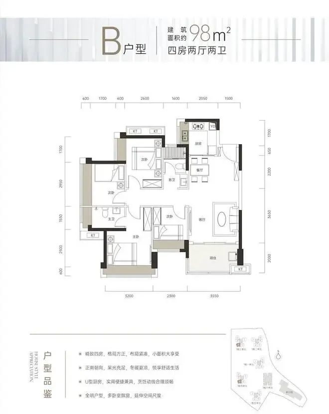 约98㎡:精致四房,小面积大享受