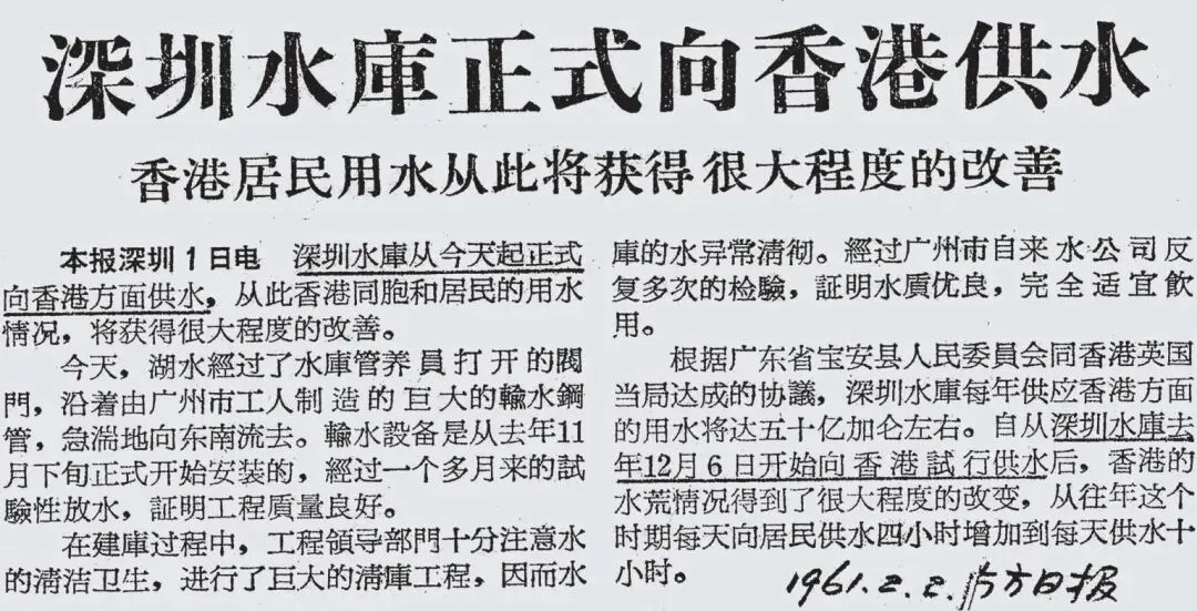 这说的其实是1960年代修建的深圳水库,以及东深供水工程。